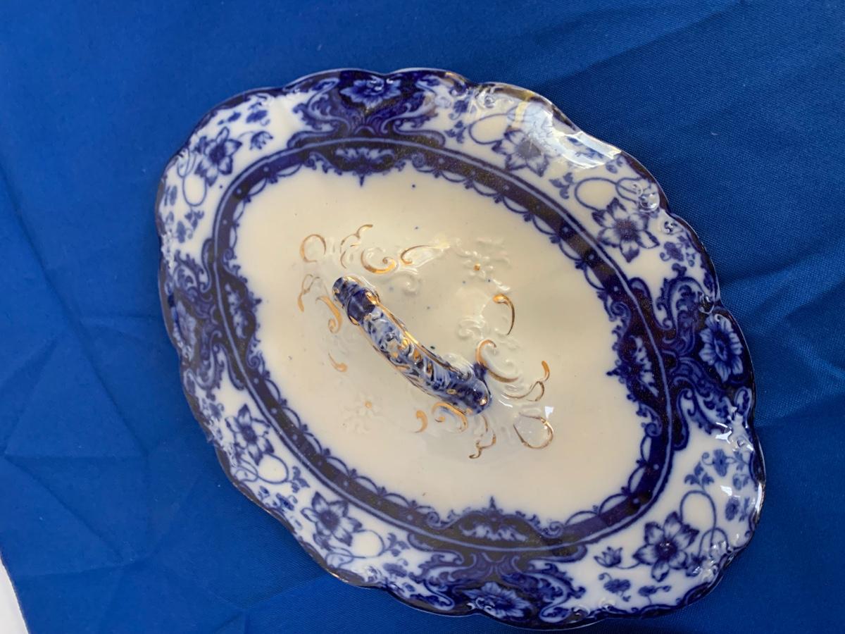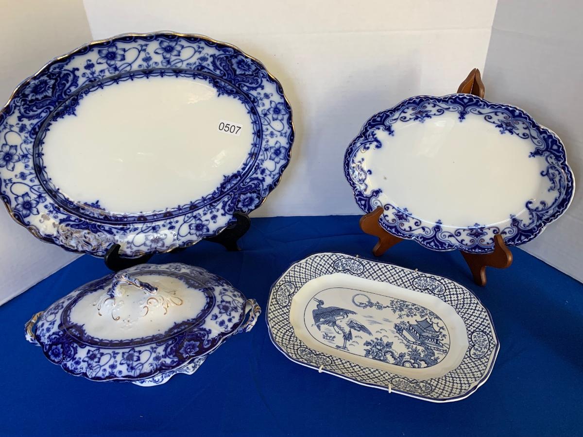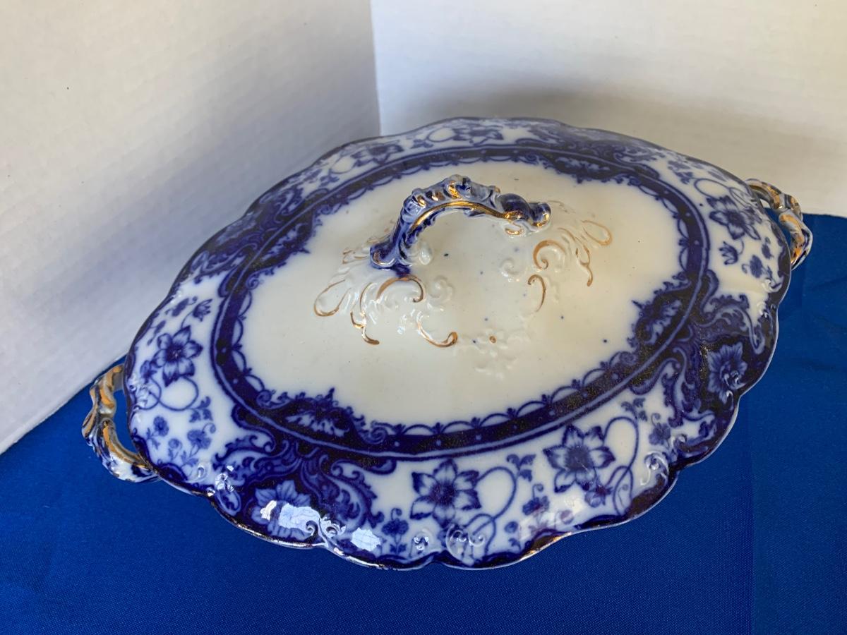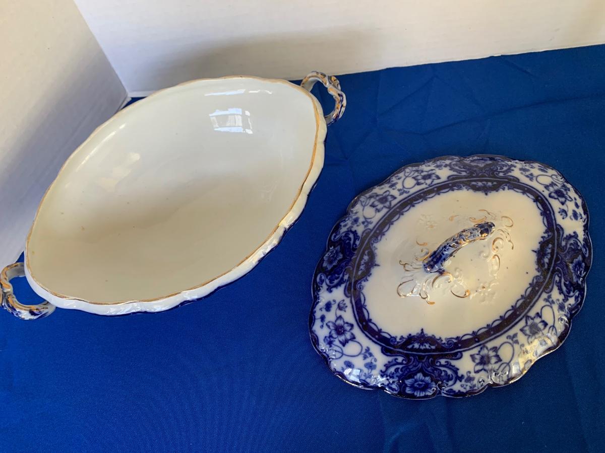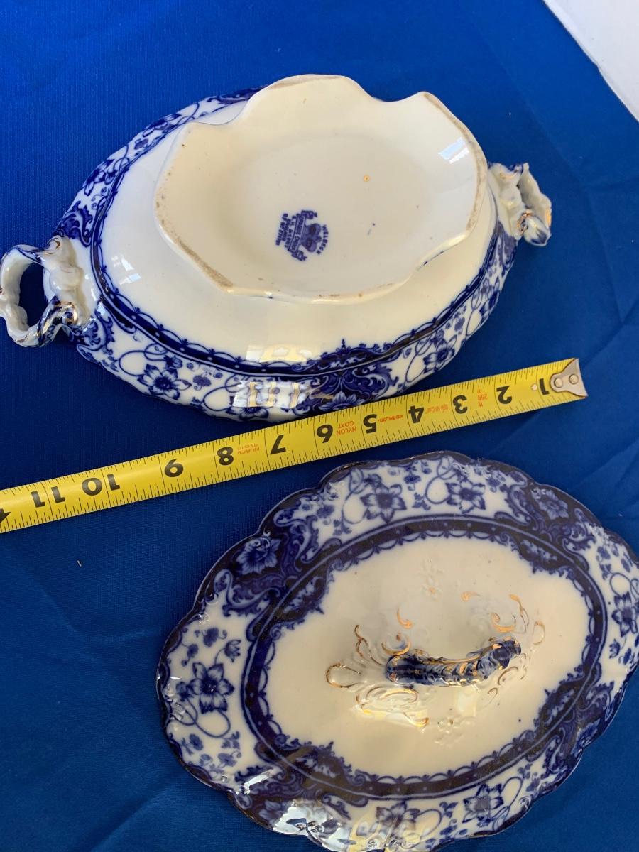 Early Antique Flow Blue Lot Large Platter Covered Serving Dish +++