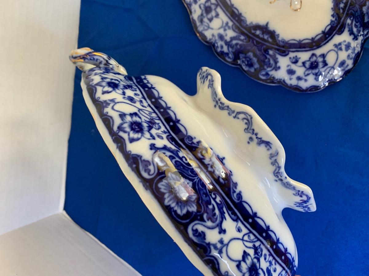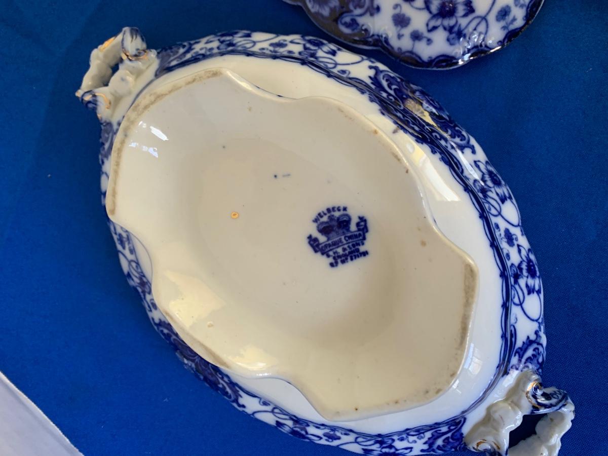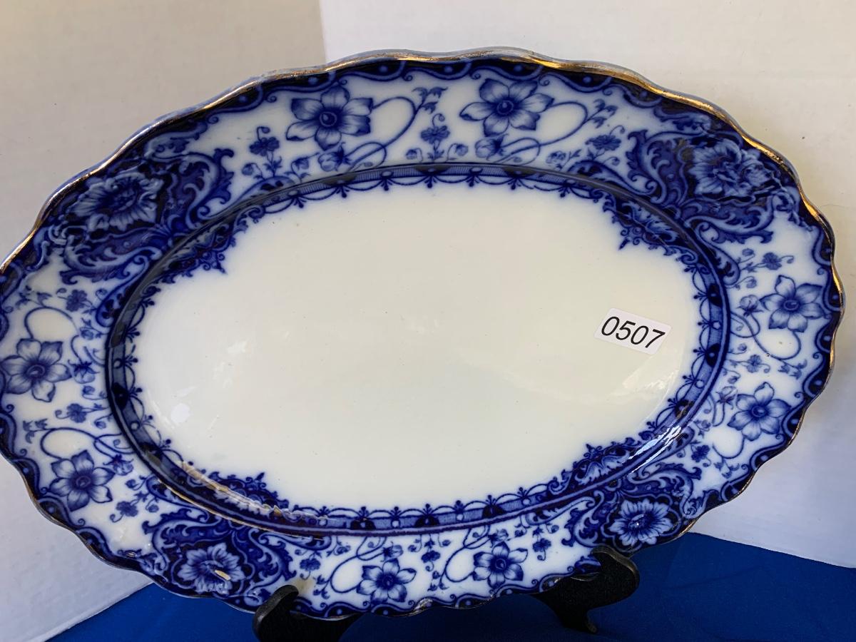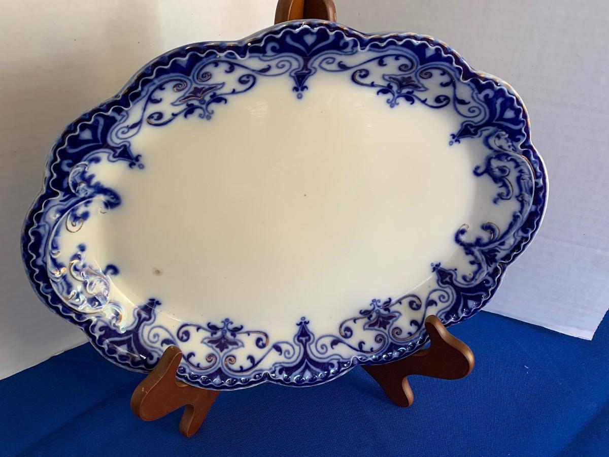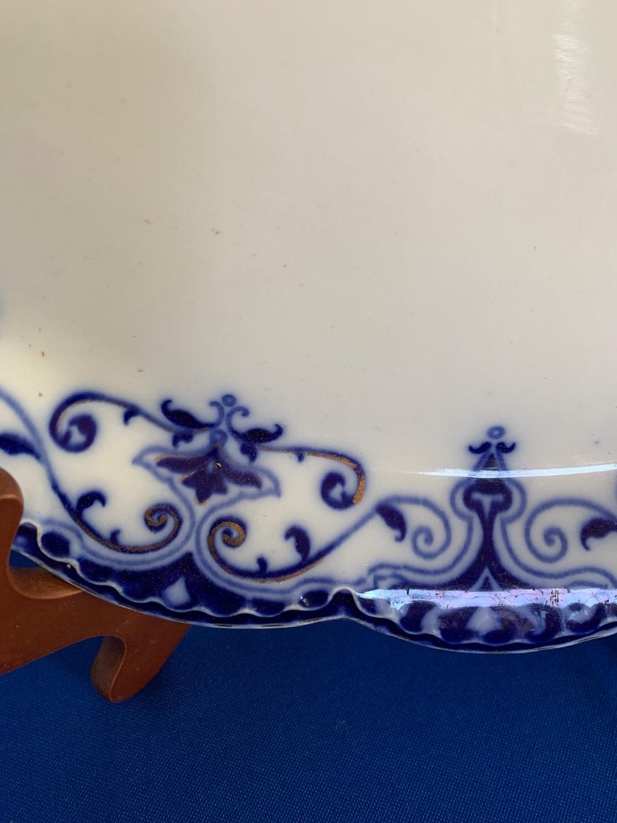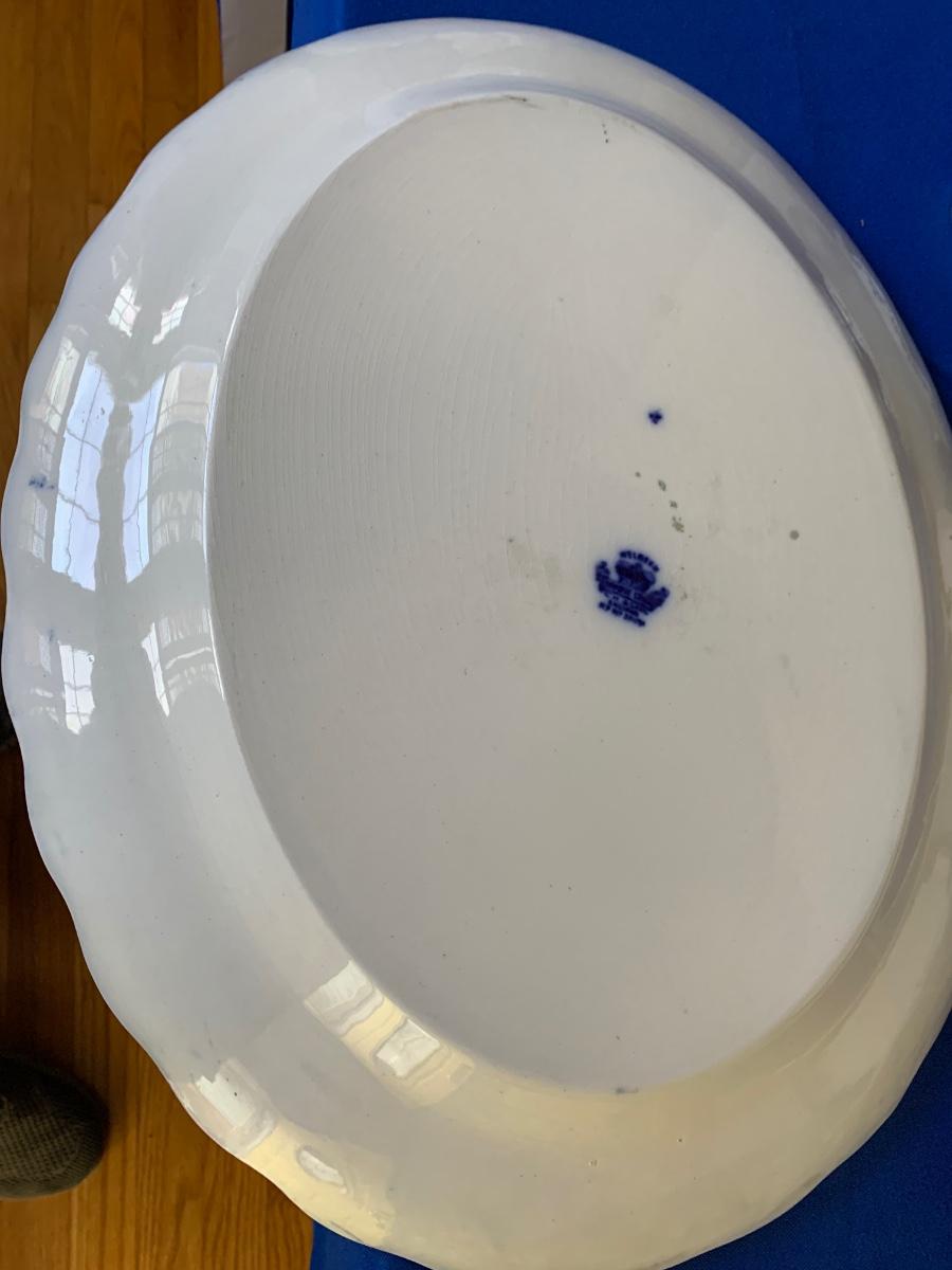Early Antique Flow Blue Lot Large Platter Covered Serving Dish +++