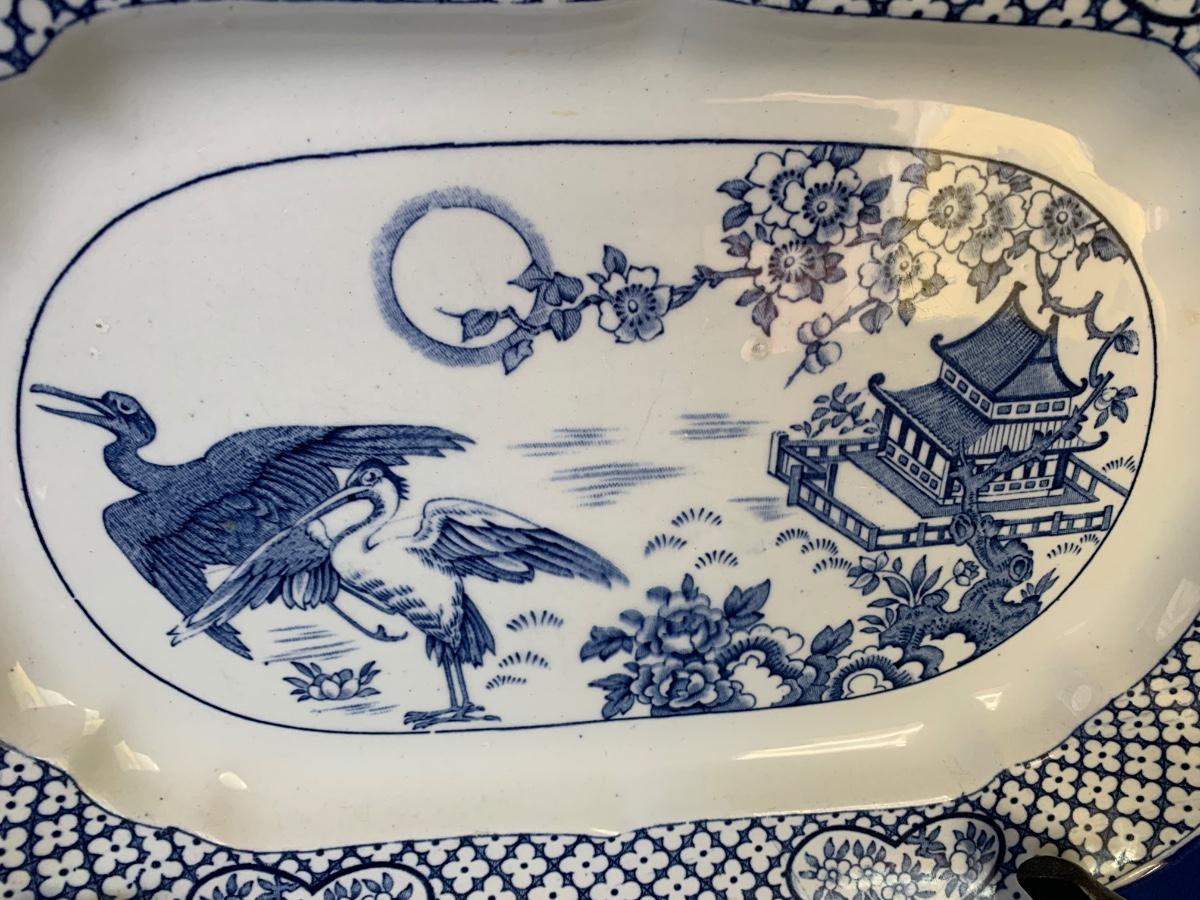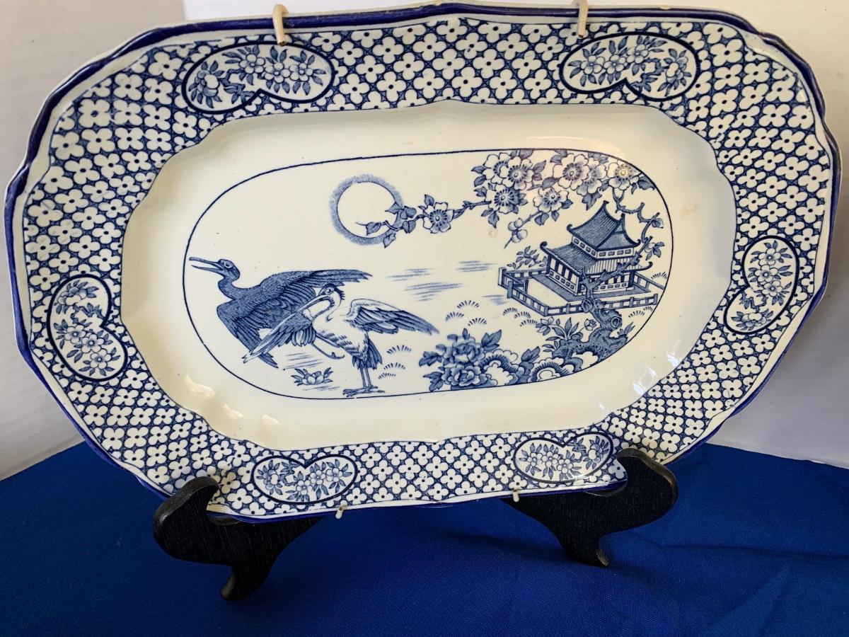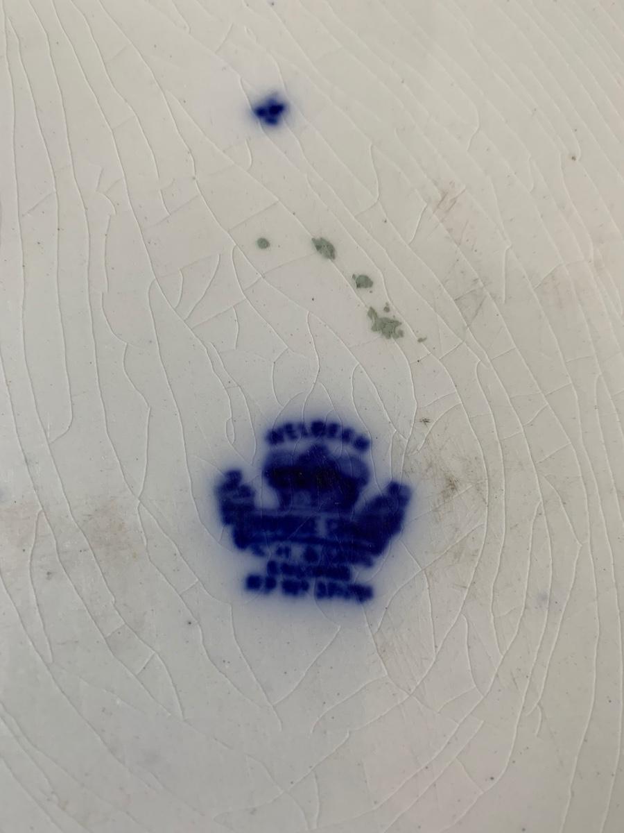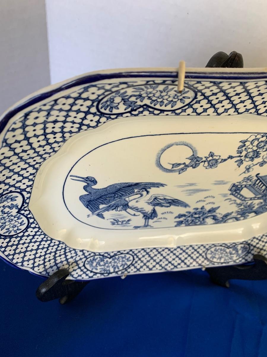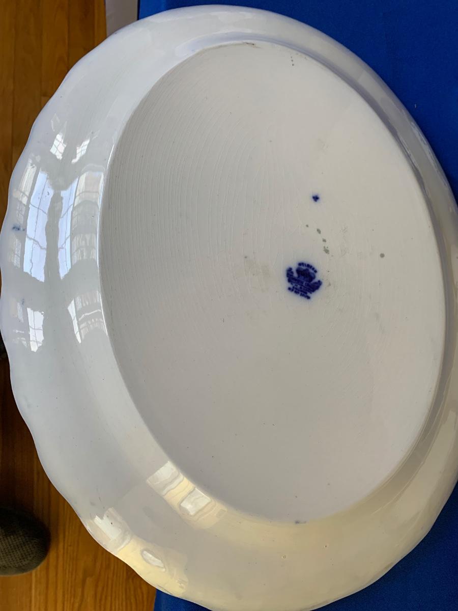 Early Antique Flow Blue Lot Large Platter Covered Serving Dish +++