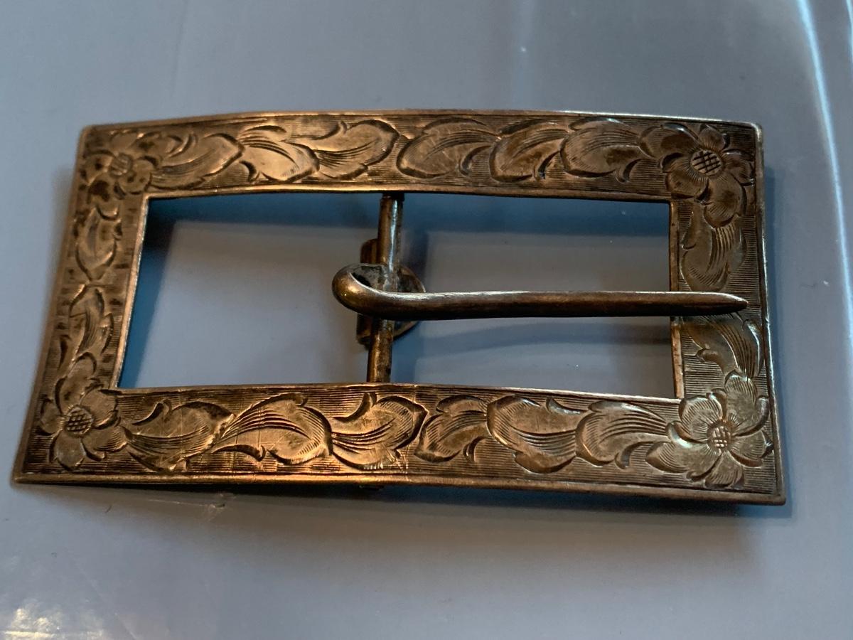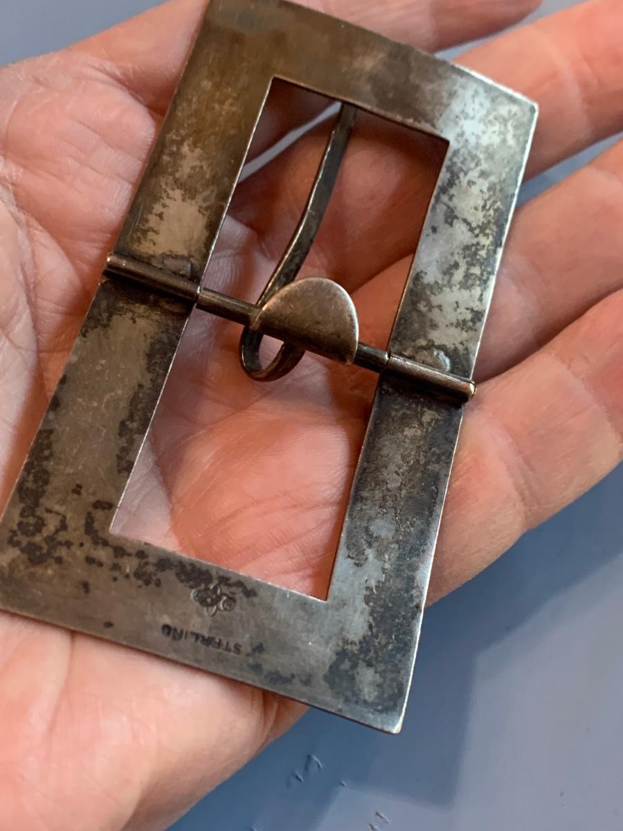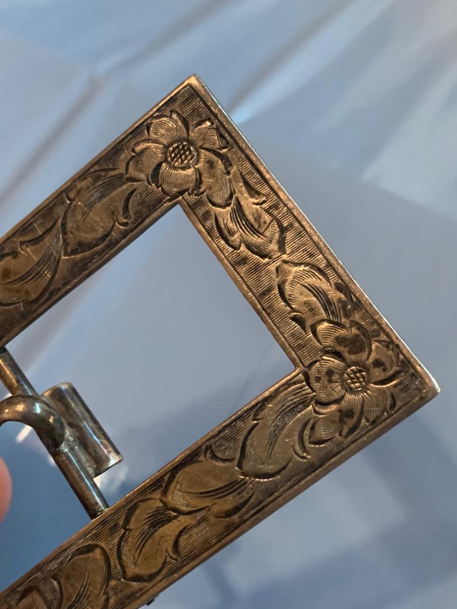 Early Antique Sterling Silver Belt Buckle - 3.5"