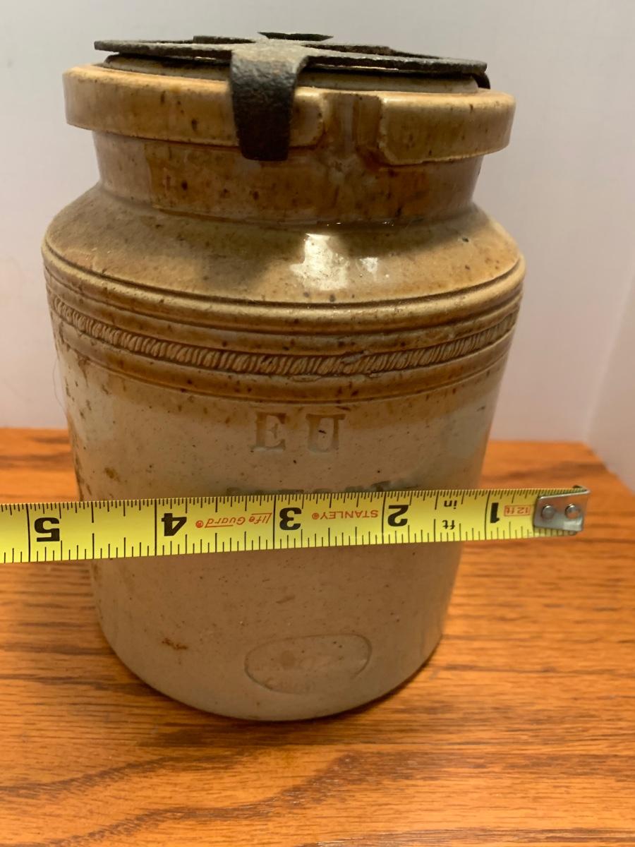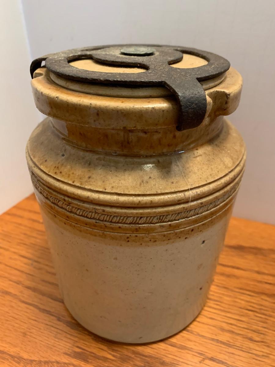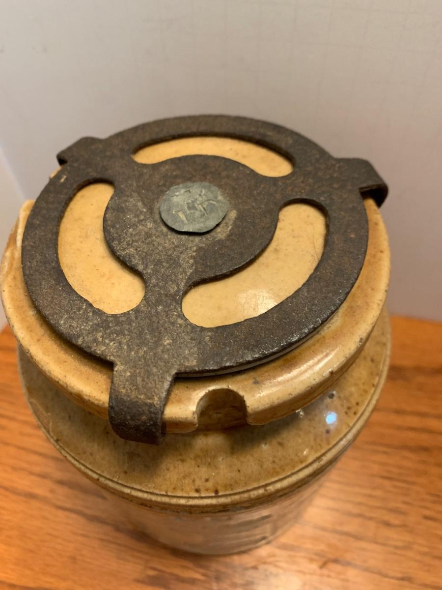 Early Antique Stoneware Crock w/ Lid & Original Lock