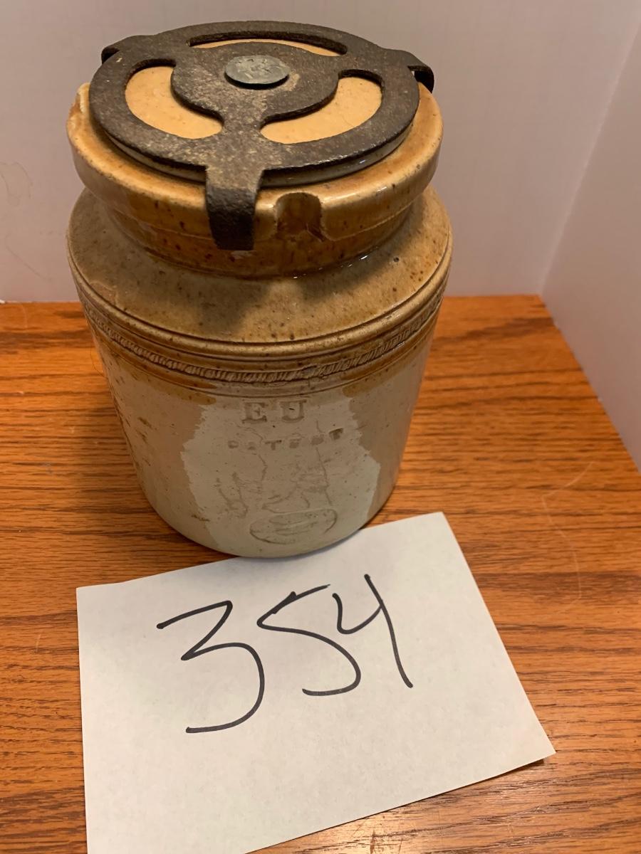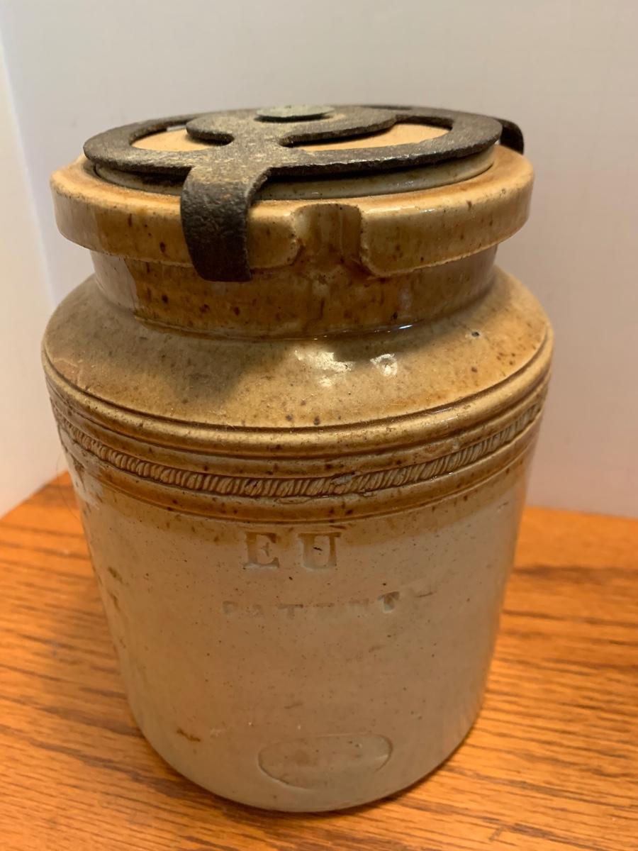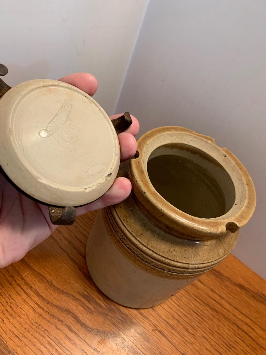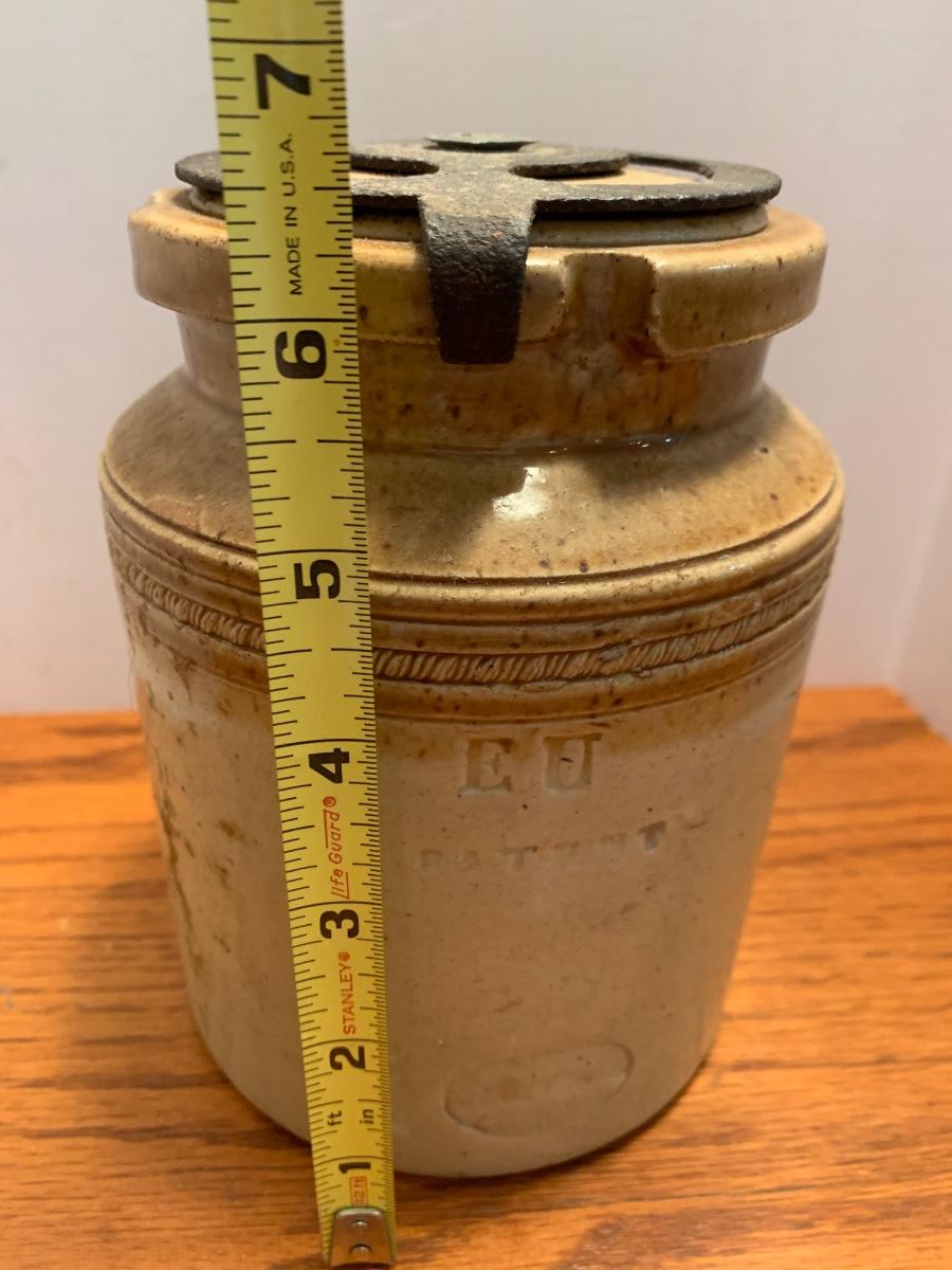 Early Antique Stoneware Crock w/ Lid & Original Lock