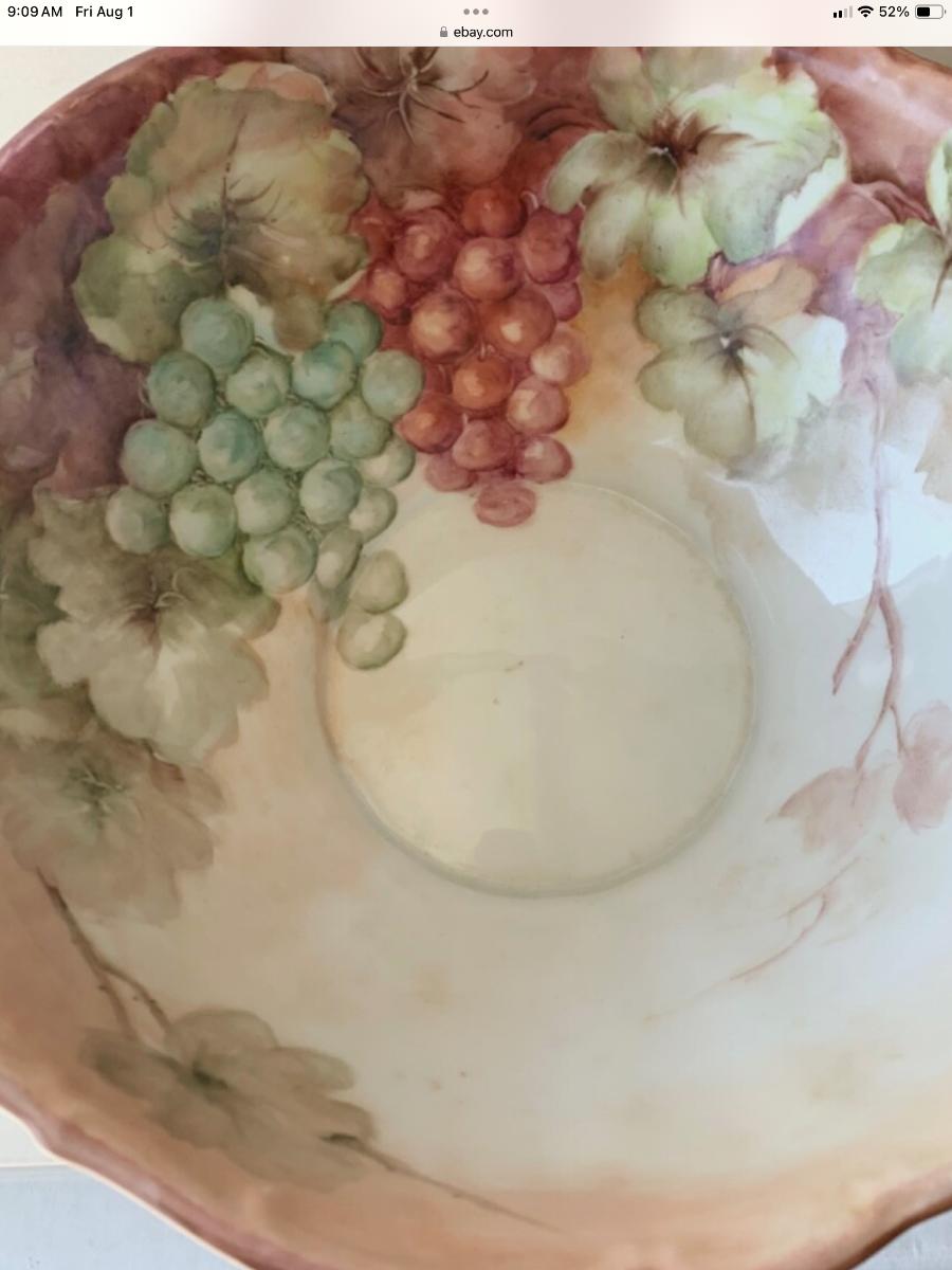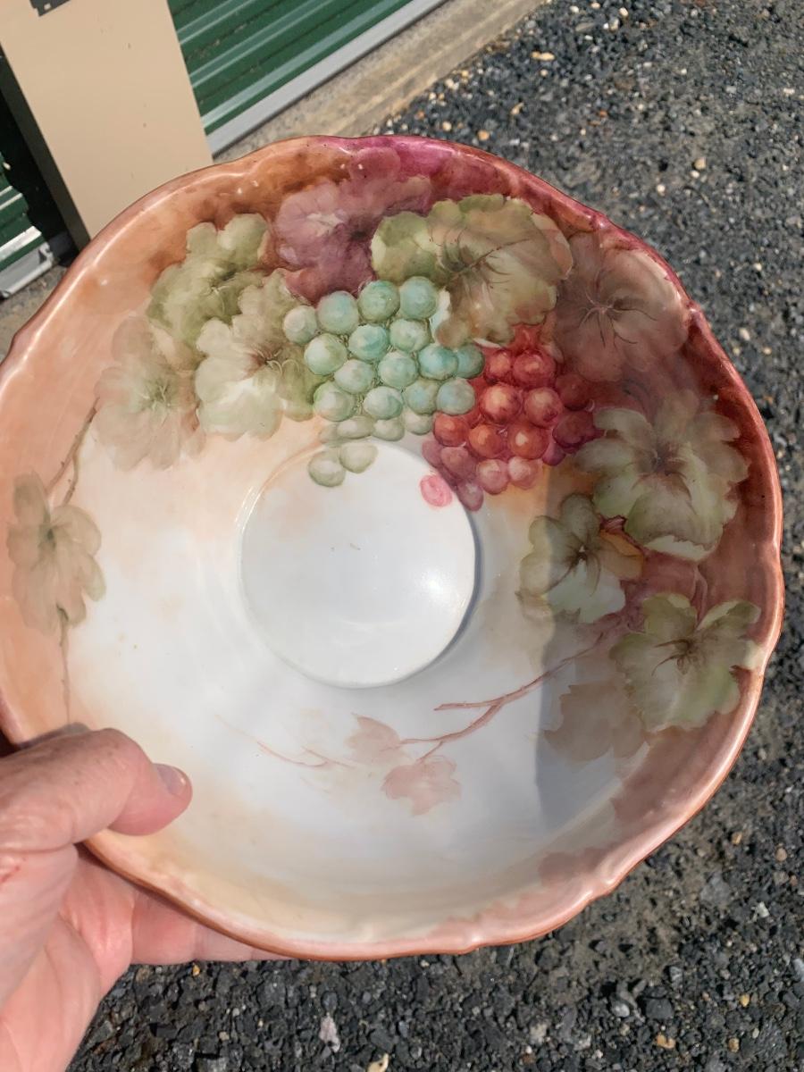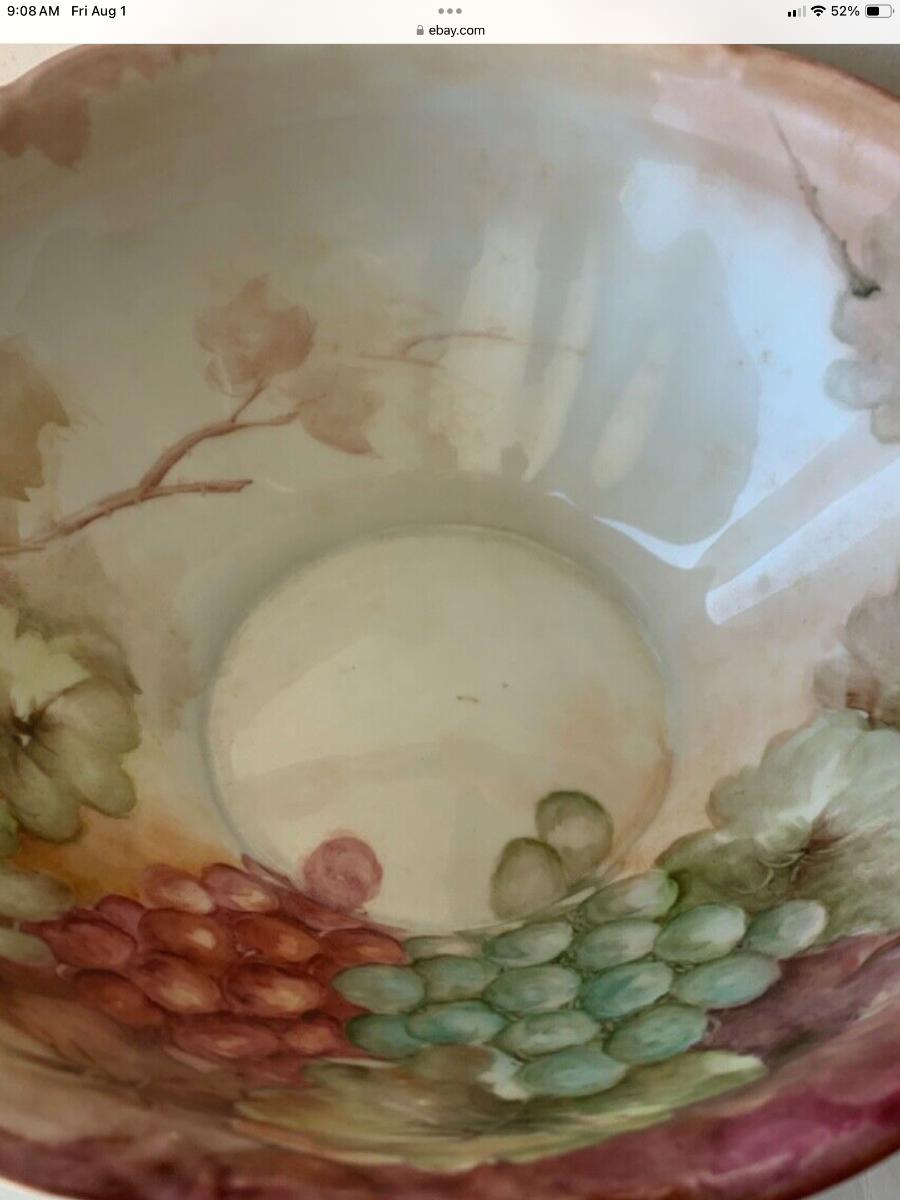 Early Bareuther Waldsassen Hand Painted Floral Grapes Centerpiece Bowl