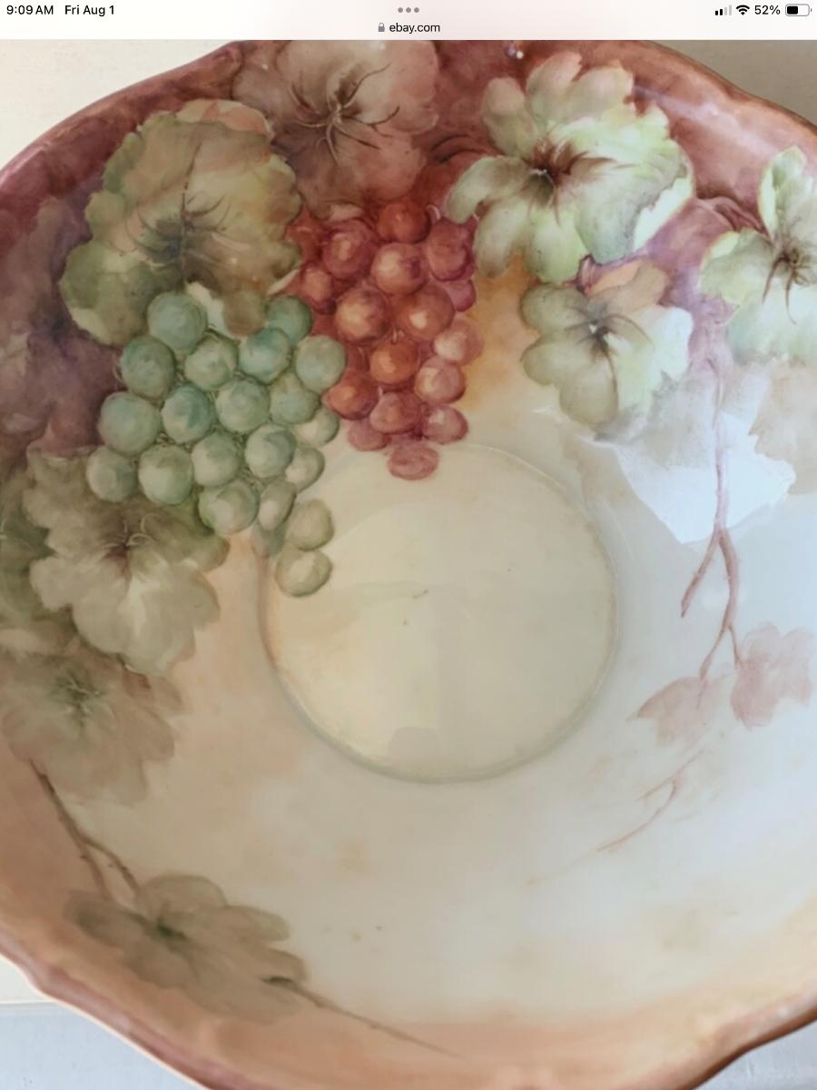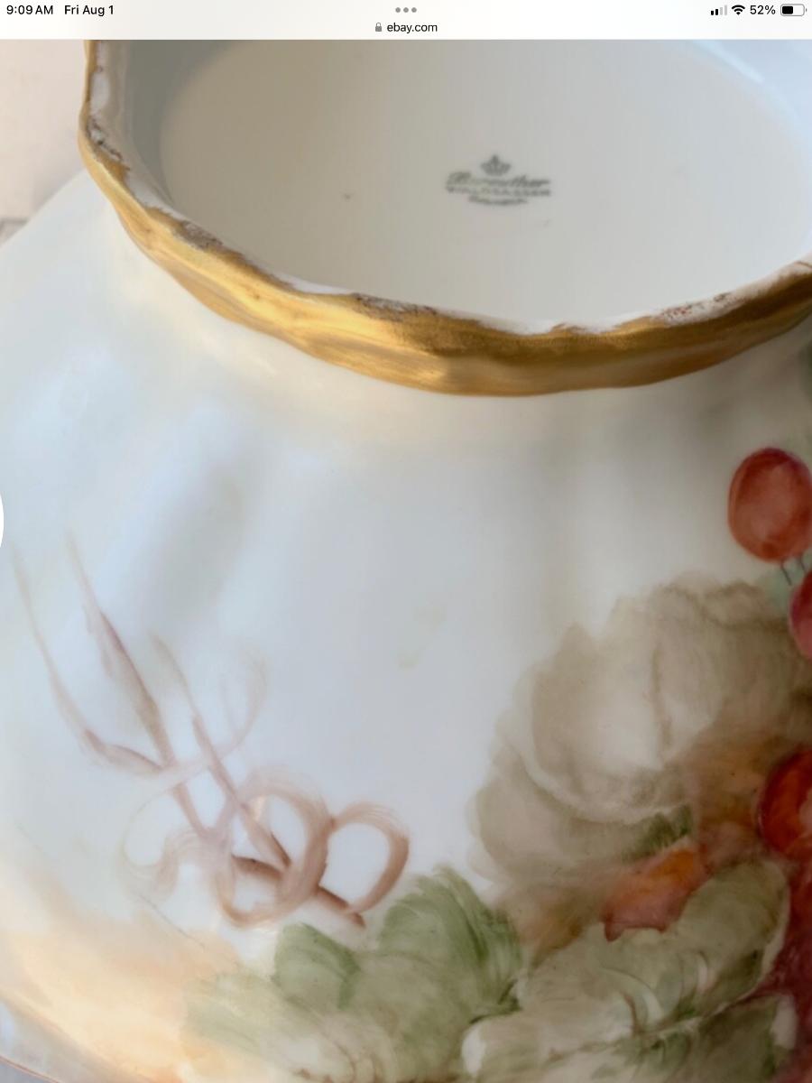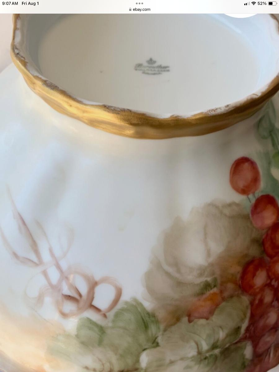 Early Bareuther Waldsassen Hand Painted Floral Grapes Centerpiece Bowl