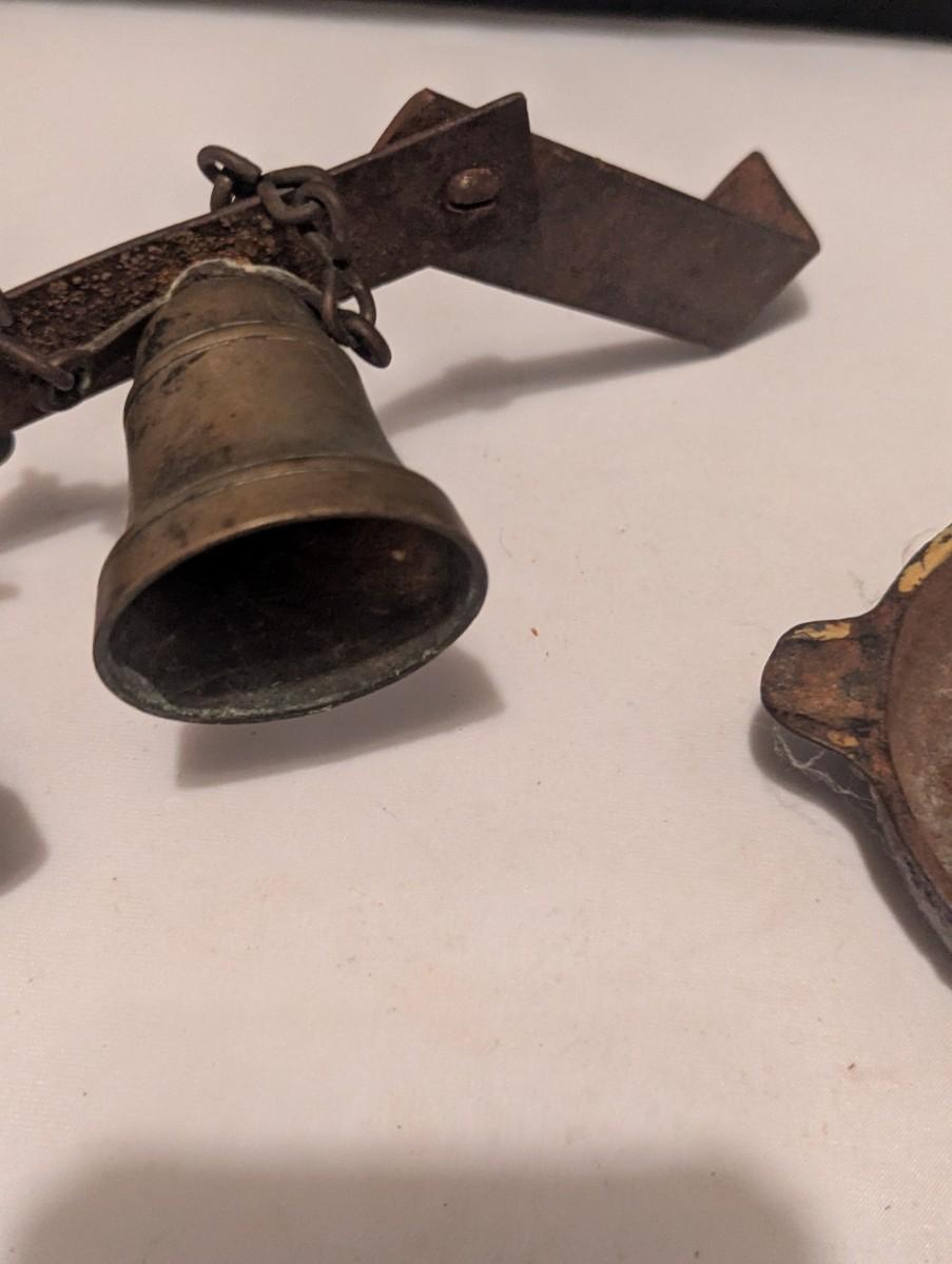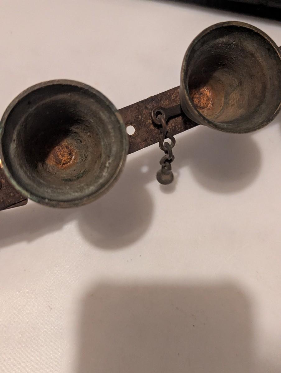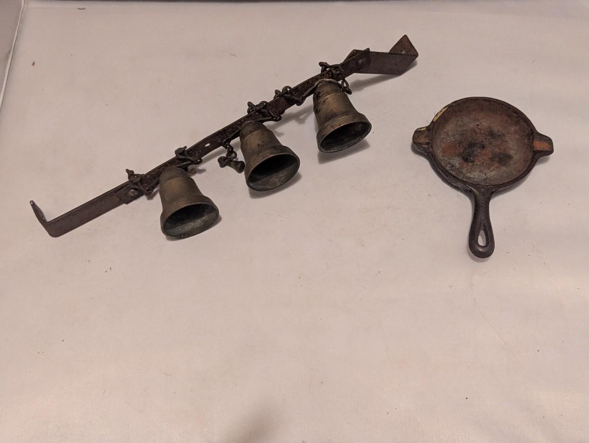 Early Brass Horse Hames Bell Set Sleigh Buggy & Small Skillet (B)