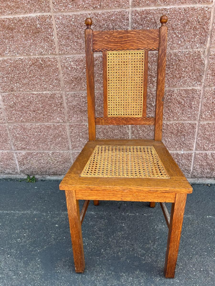 Oak chair from the early 1900's with caning on back and seat. In excellent condition.