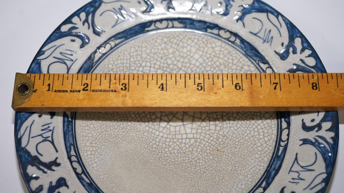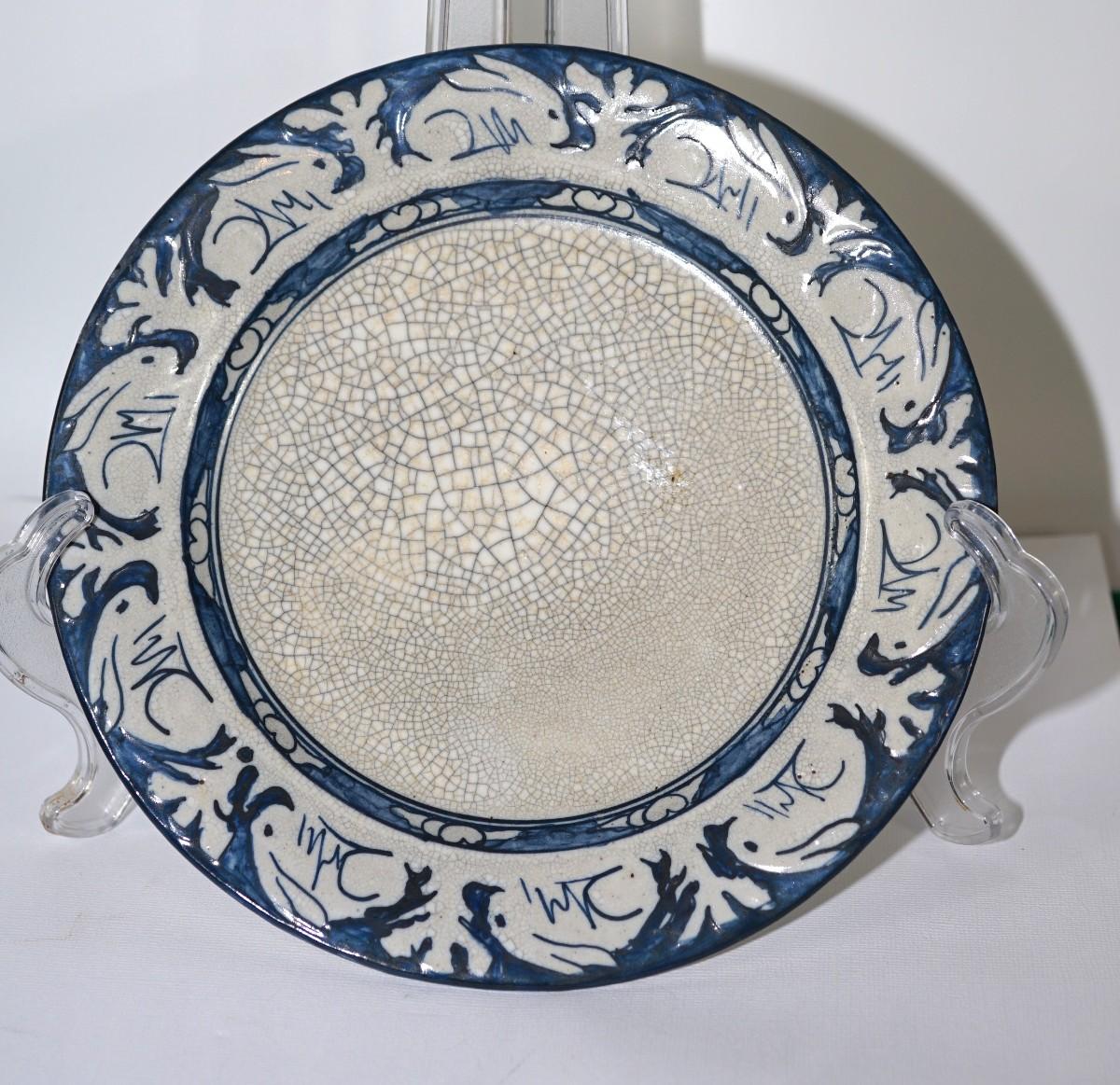 This plate is an early Dedham pottery plate. Rabbit pattern.