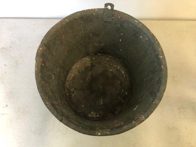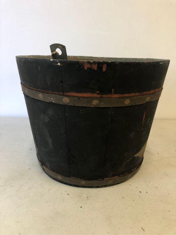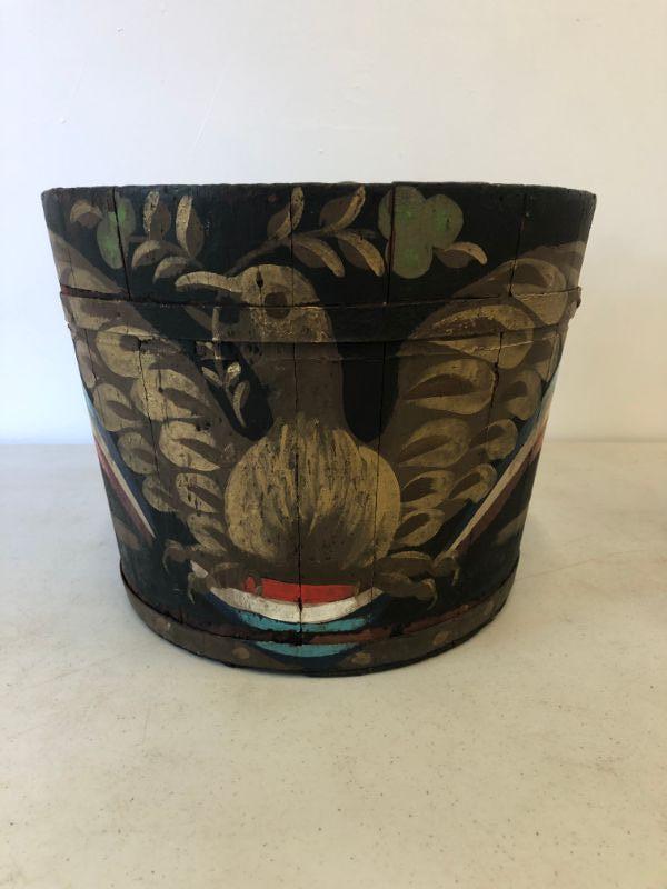 This is a nice example of an early wooden bucket with a Federal Eagle Motif. Circa 19th Century. Measures 9" high x 12" diameter.