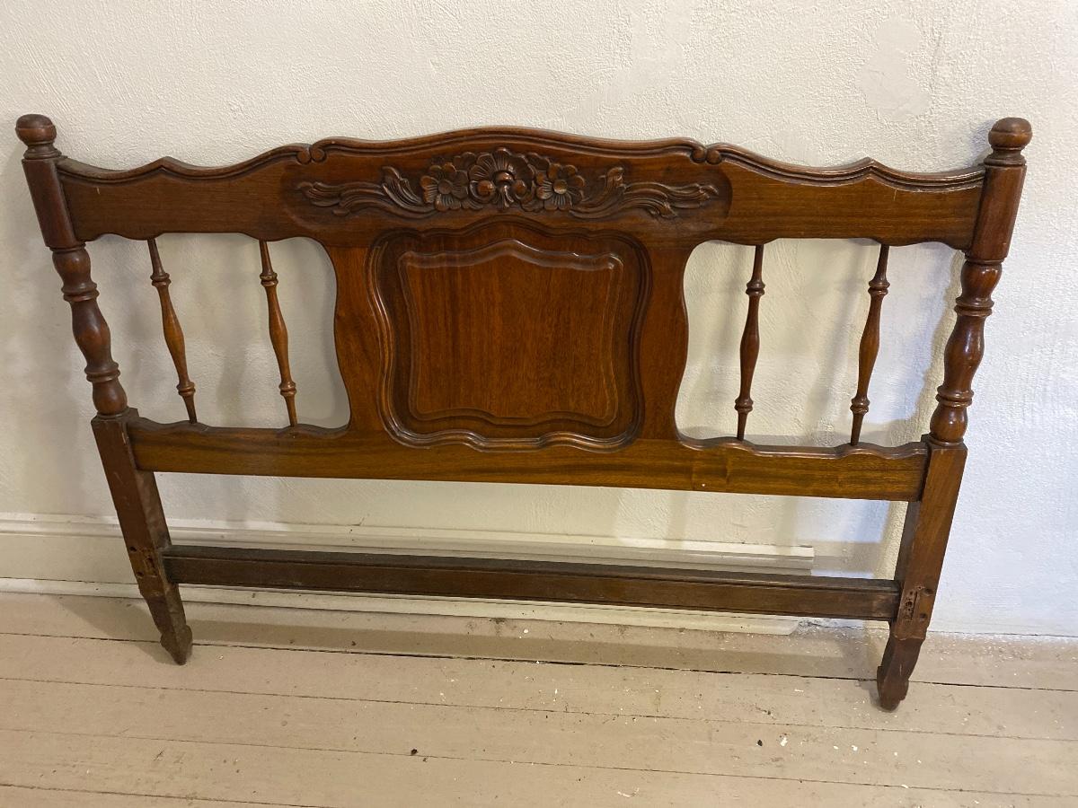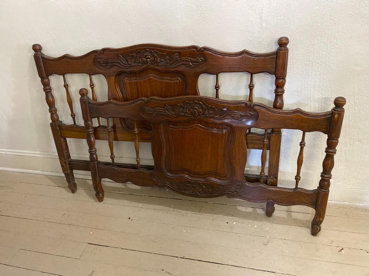 Early Full Size Carved Solid Wood Head and Foot Boards