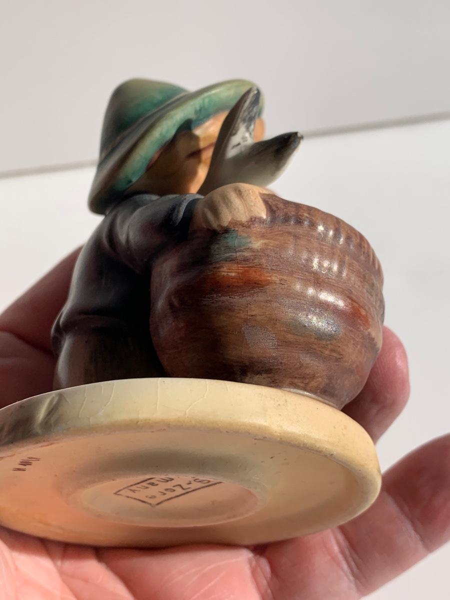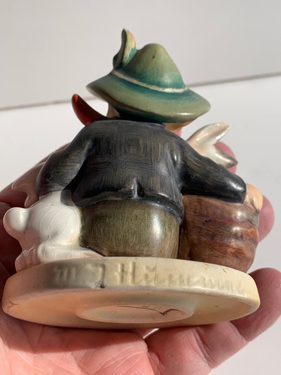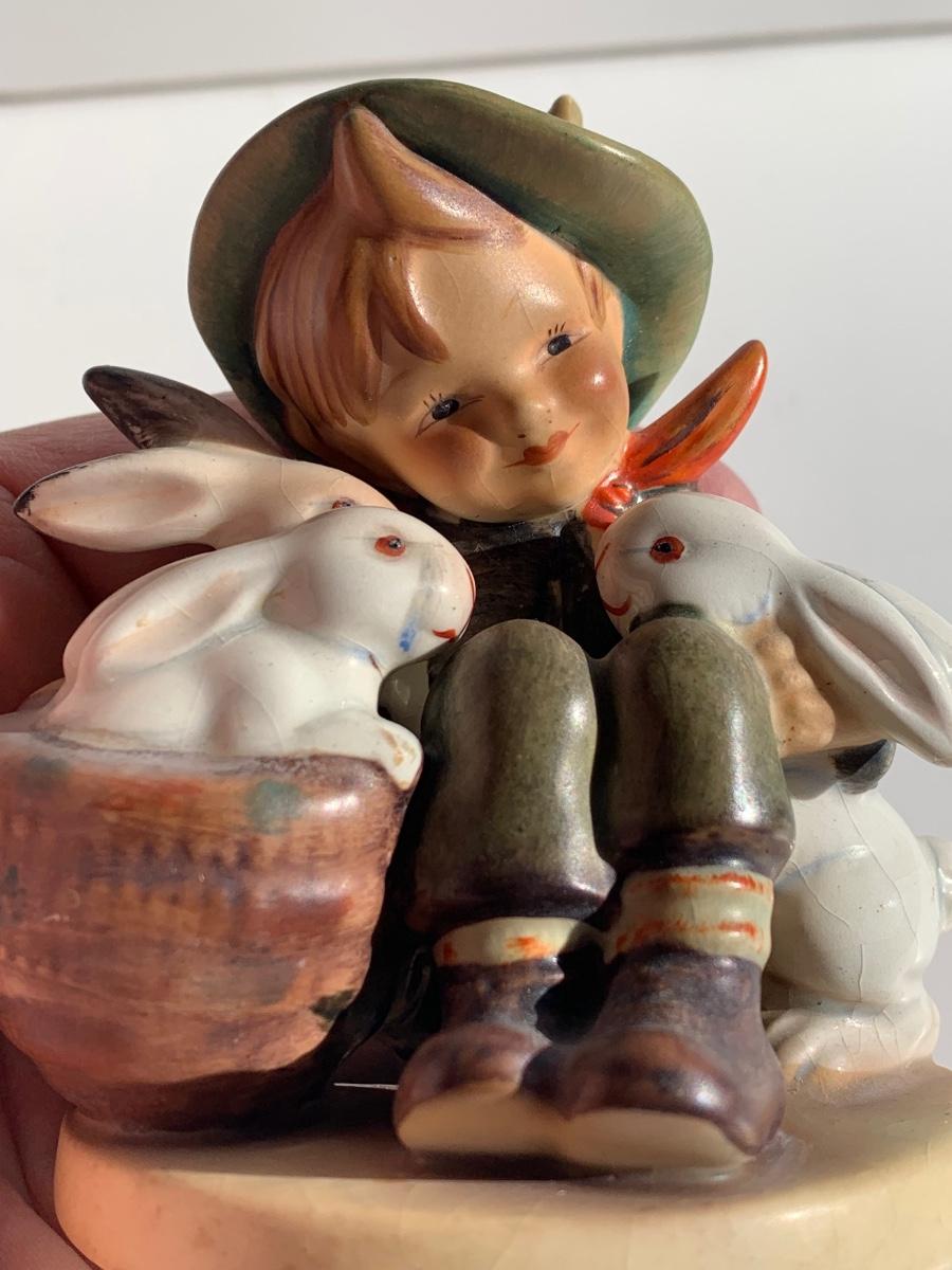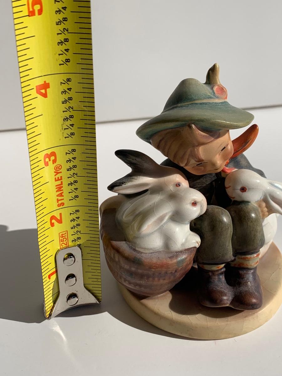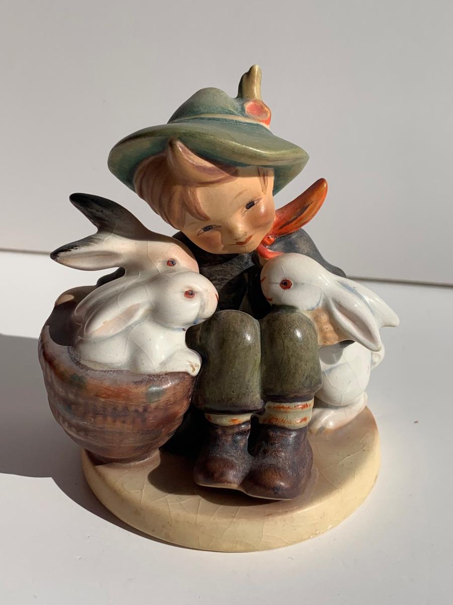 Early Goebel Hummel Figurine IS Zone Germany Stamp Boy w/ Rabbits