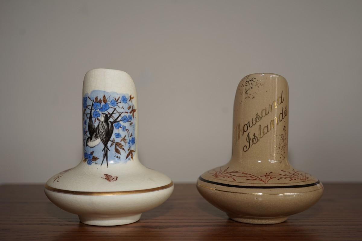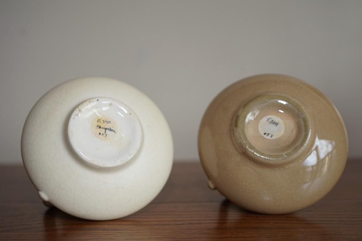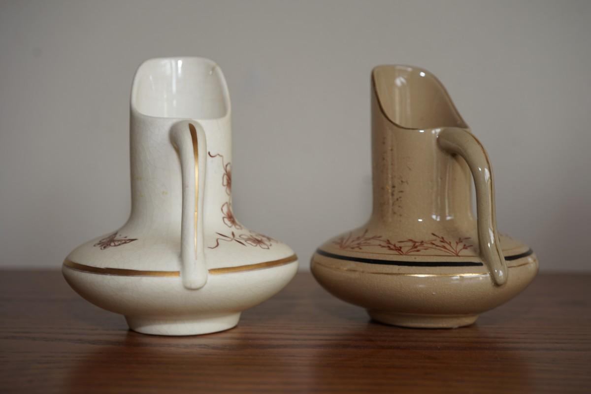 1890-1910 New Hampshire handled smaller vases of 5 3/8" height of both