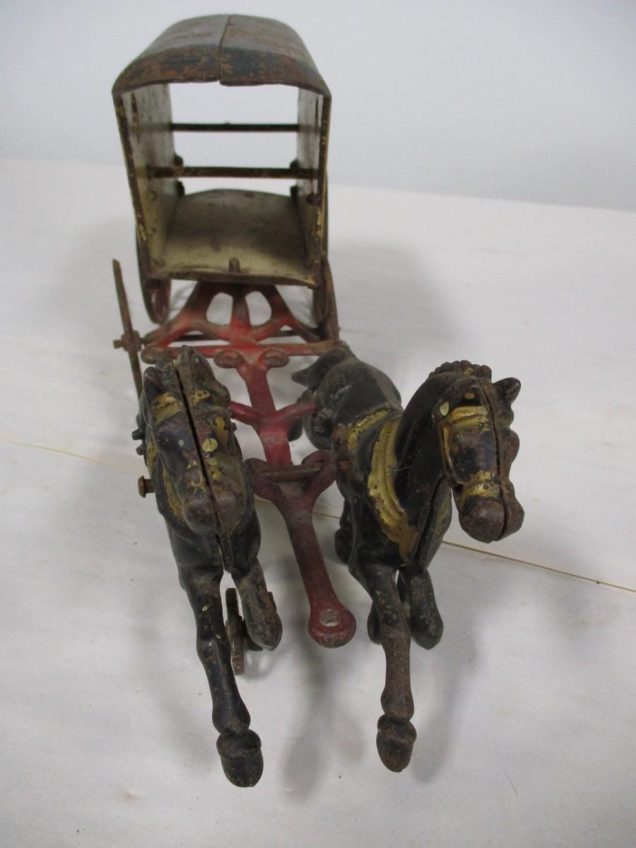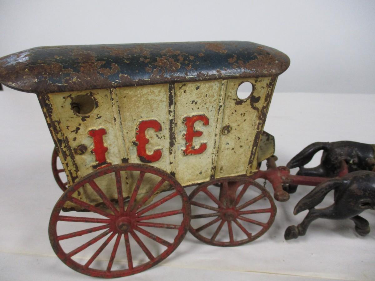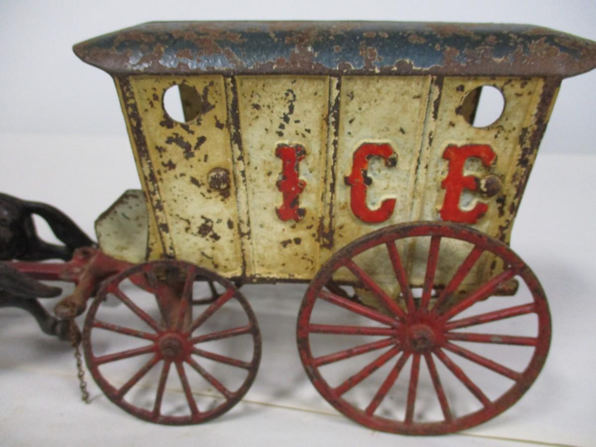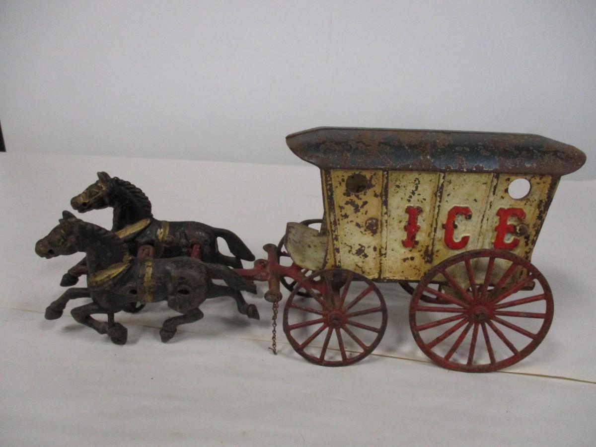 Early Hubley Cast Iron Double Horse Team Drawn Ice Wagon