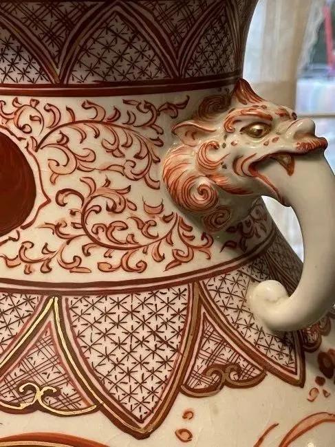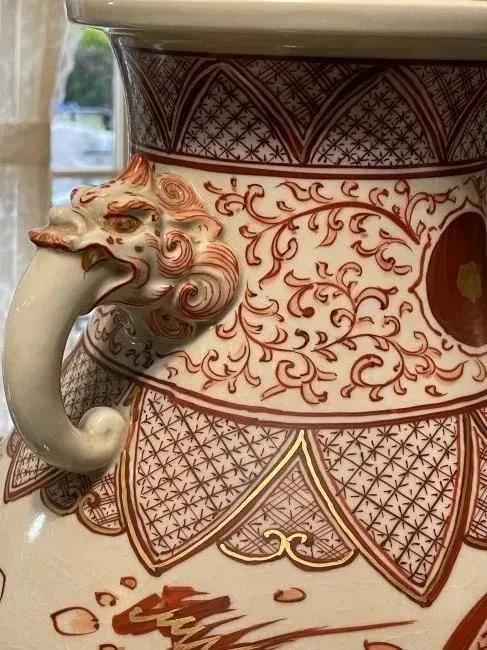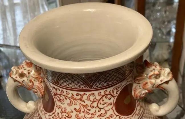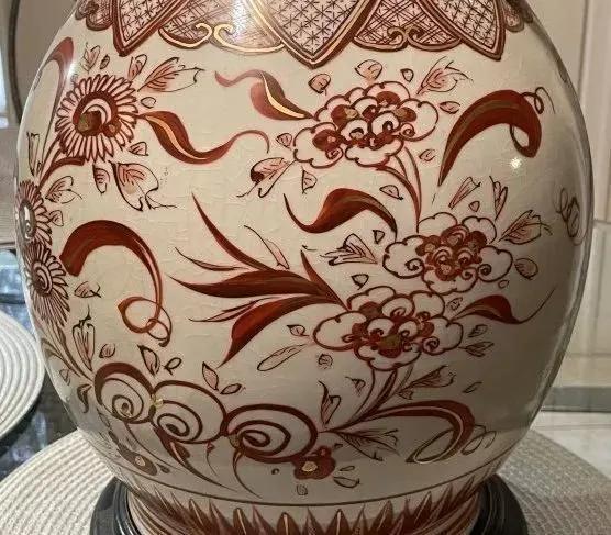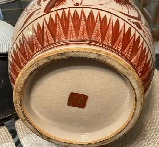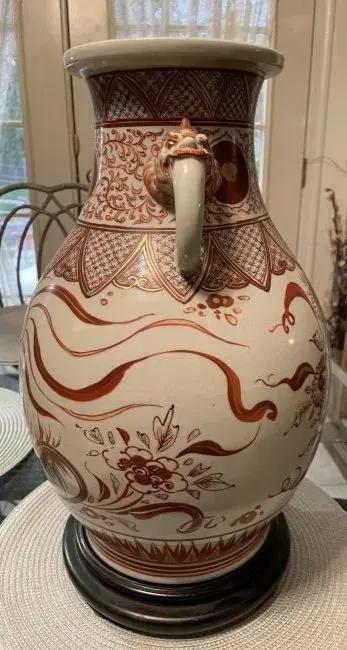 Early Japanese Kutani/Satsuma Hand Painted Signed Red/Gold Mark Vase from 1800's 15.5" Tall & w/Base 17" Tall VG/FANTASTIC Preowned Condition. (Pickup Only in Berlin, NJ 08009)