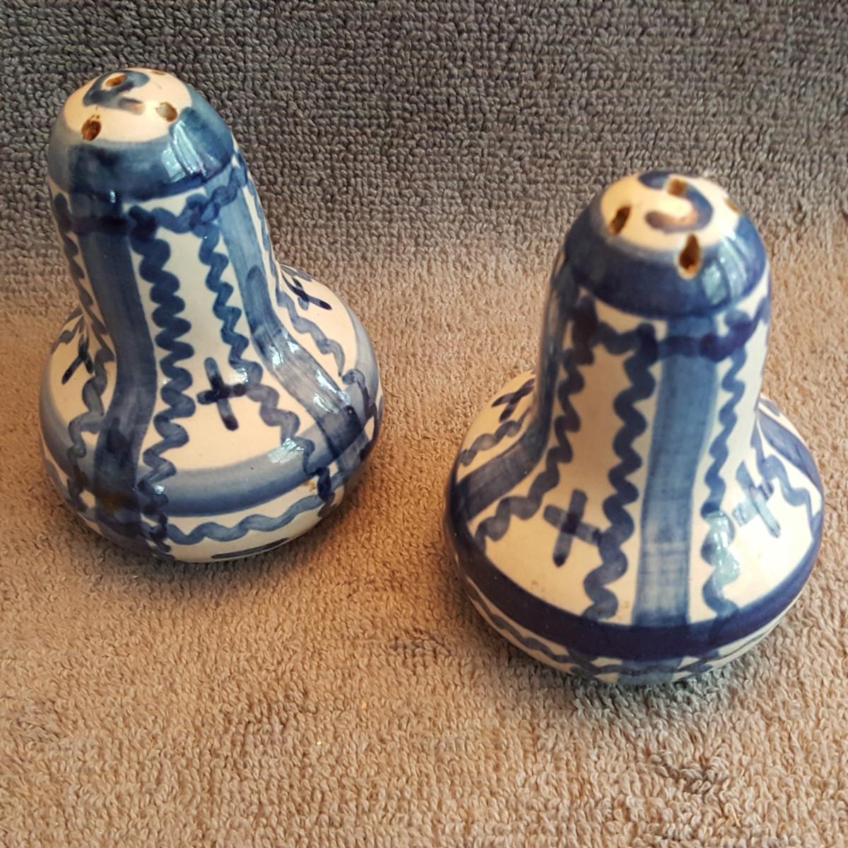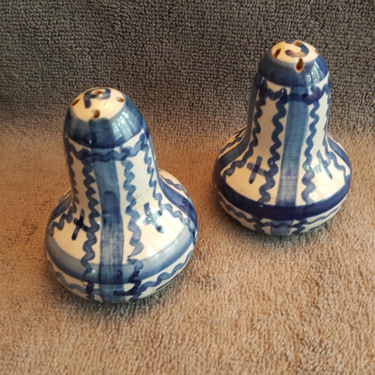 This auction lot is for a set of Early John Taylor Pottery Salt & Peppers. John Taylor Pottery was the previous incarnation of Louisville Stoneware - which continued this design. This is a nice early set that only needs new corks to make them usable.