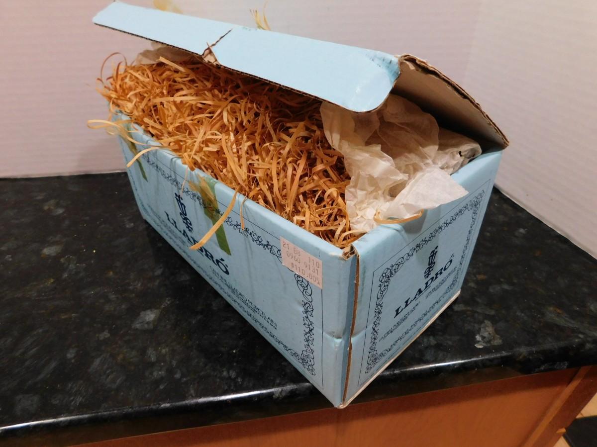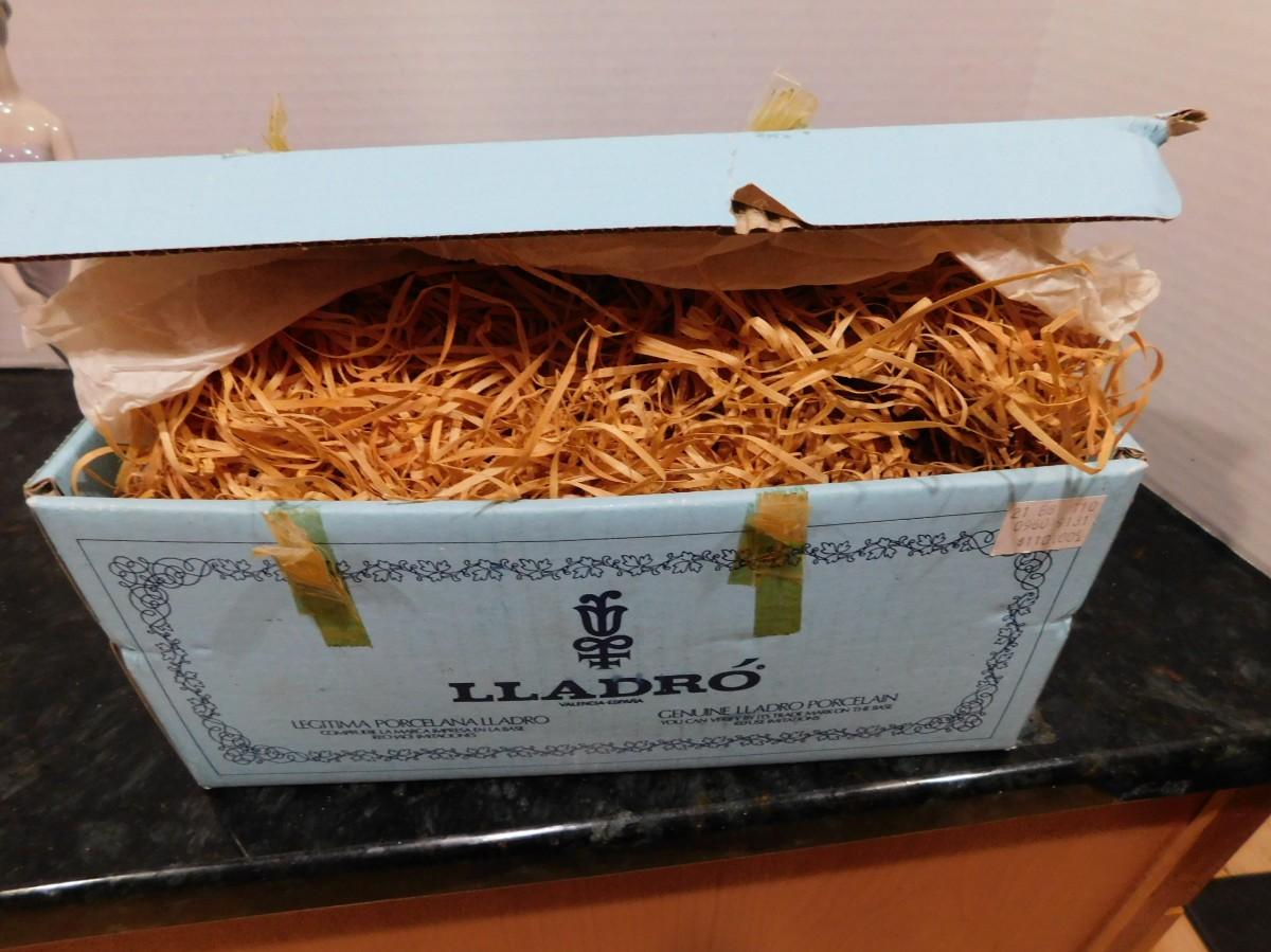 MINT CONDITION - As you can see from the photos, this is one of Lladros earliest boxes and packing - I will replace some of the hay stuffing with bubble wrap to ship.