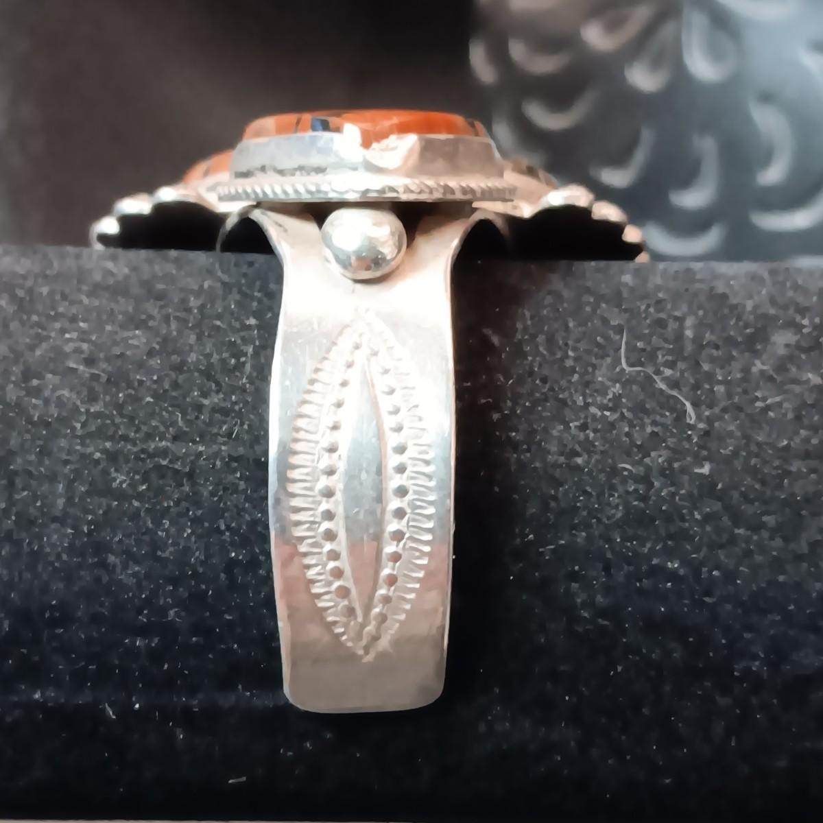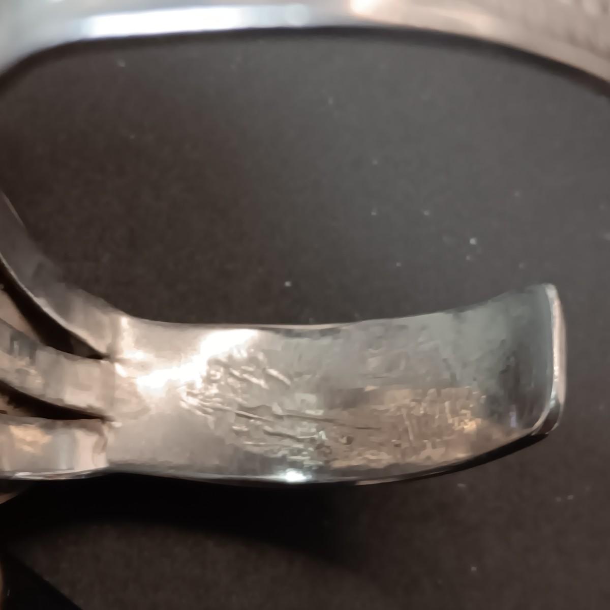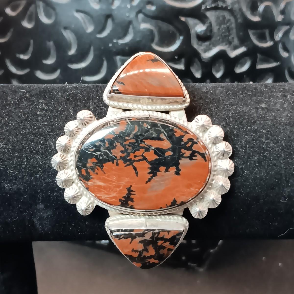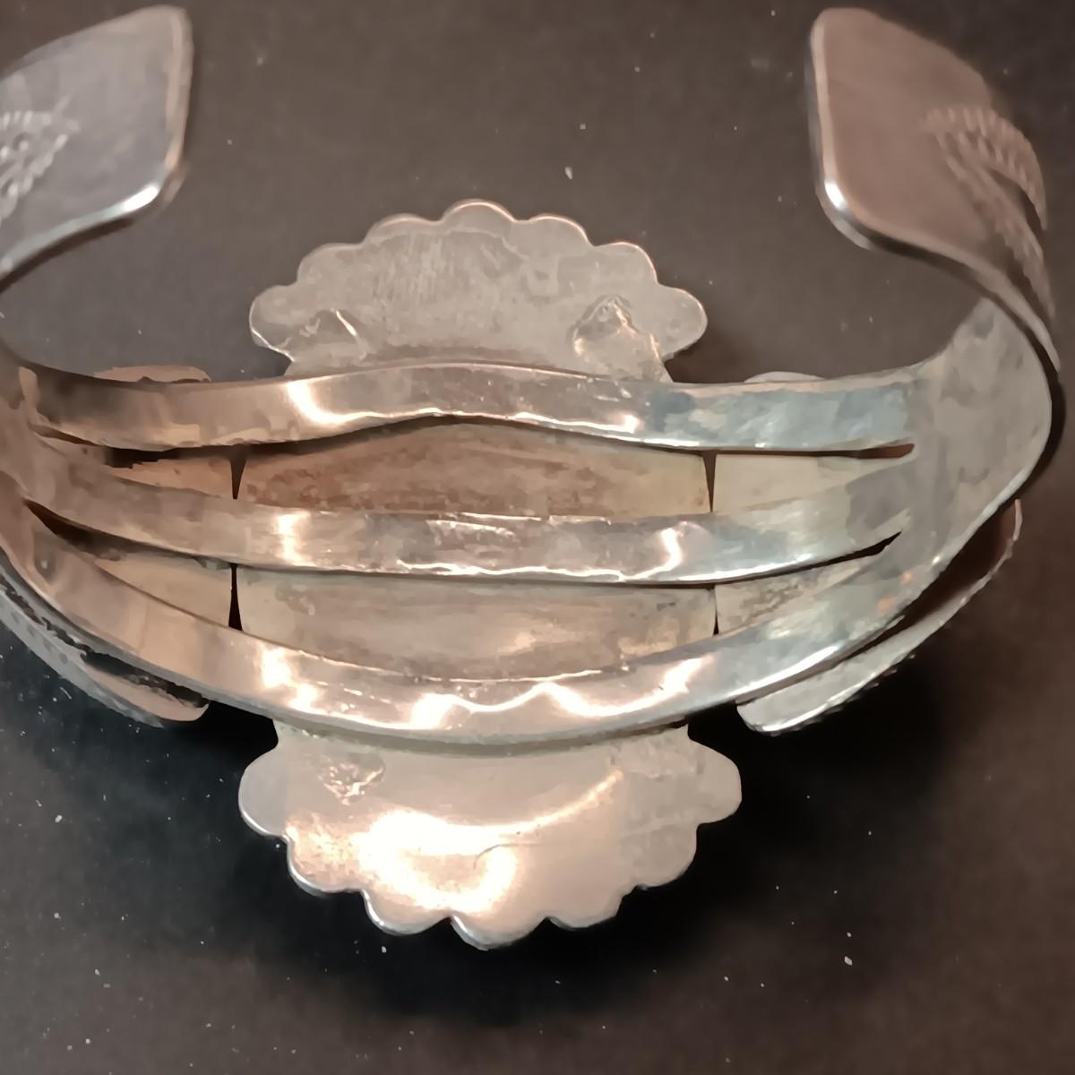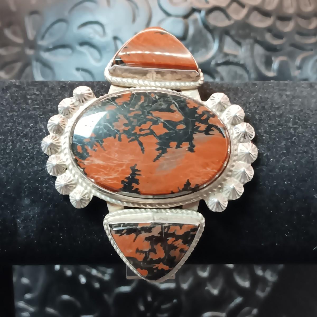 EARLY NAVAJO STERLING SILVER CUFF BRACELET WITH PETRIFIED WOOD
