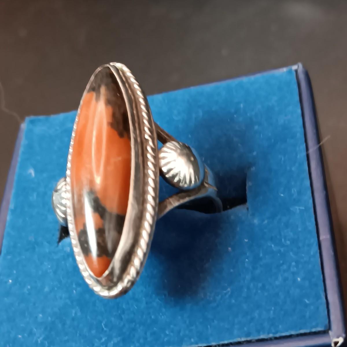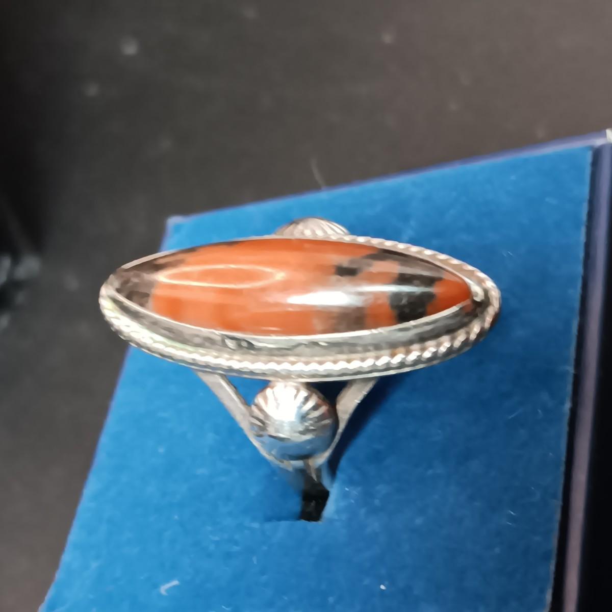 EARLY NAVAJO STERLING SILVER RING WITH PETRIFIED WOOD SIZE 7