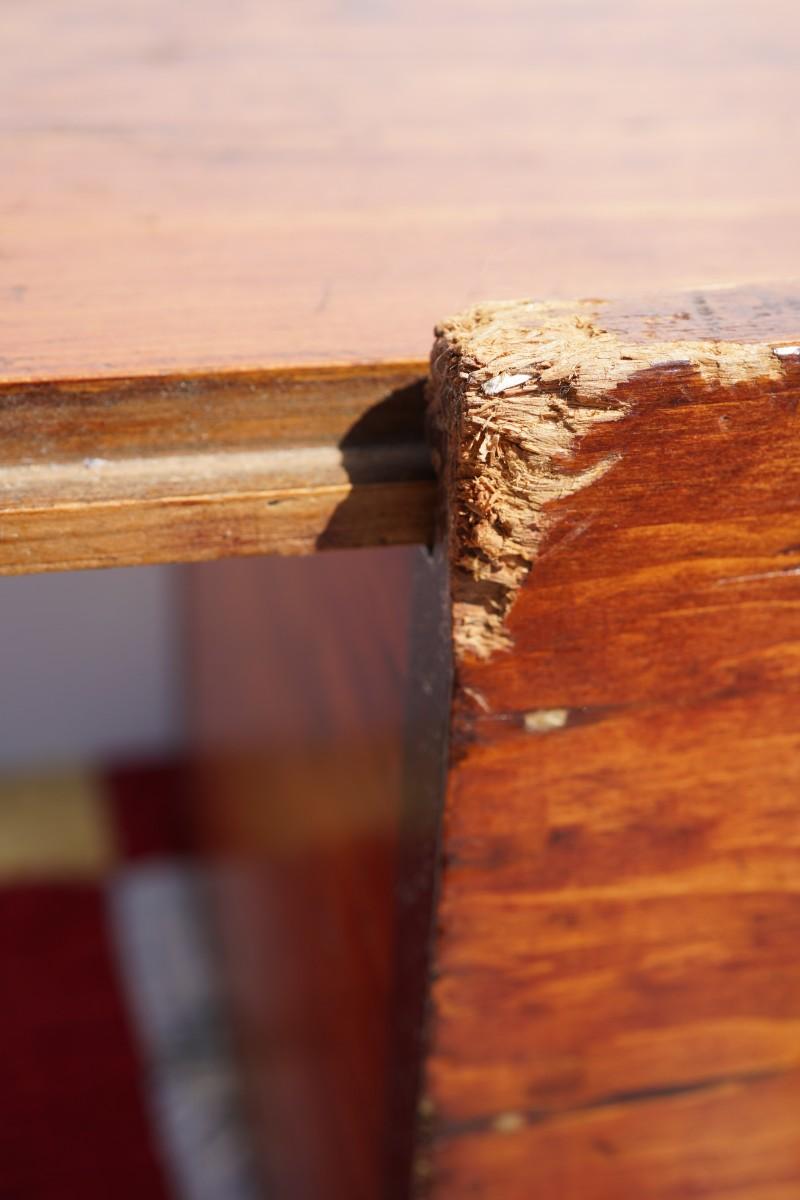 There is a corner that has wear or "chew" marks. nice clean interior of natural pine