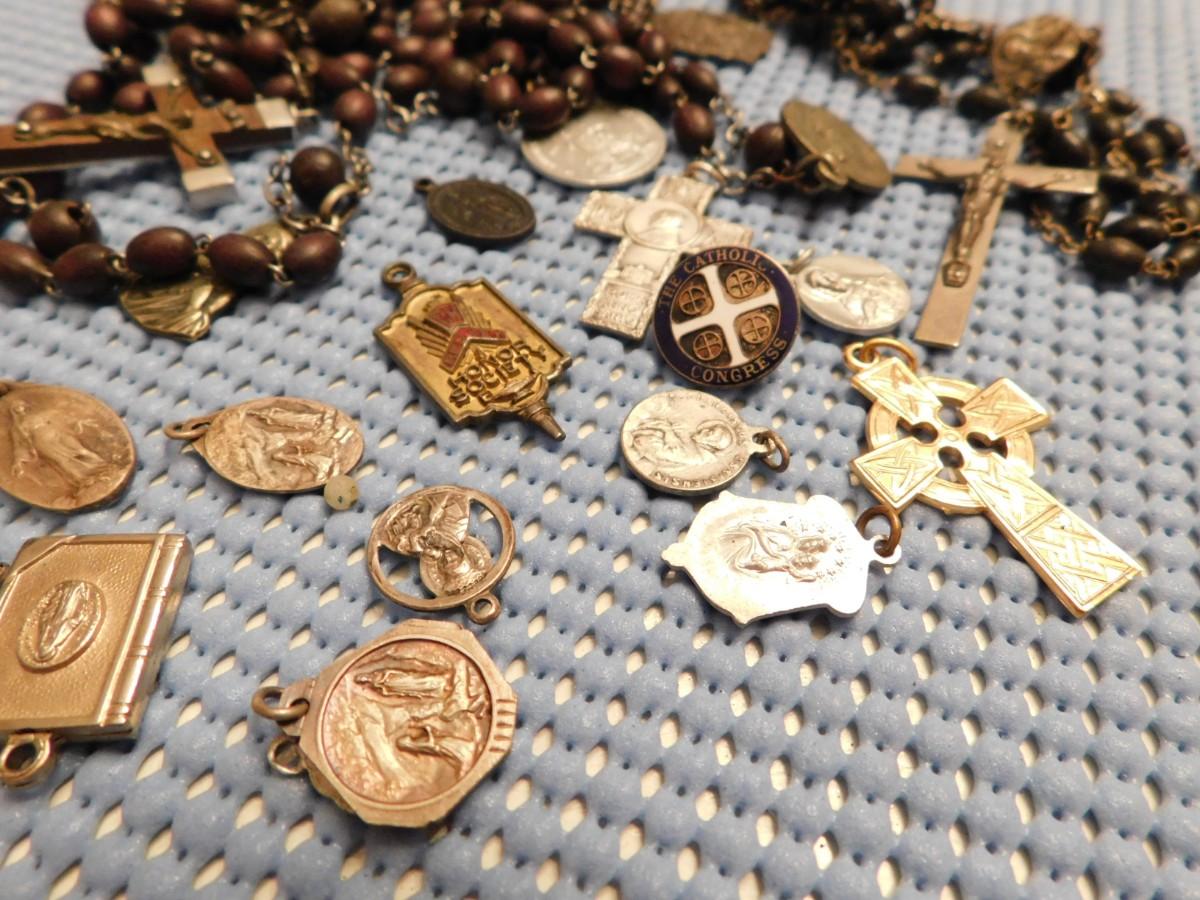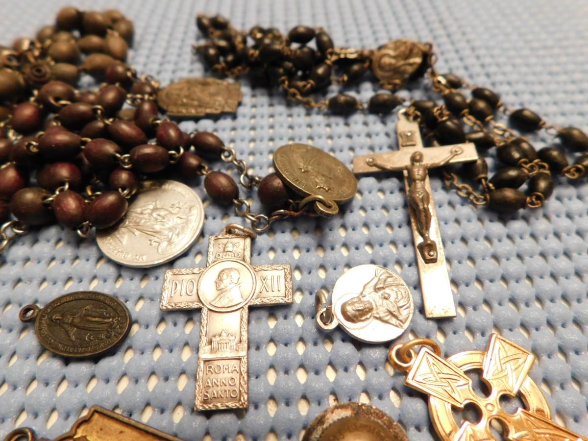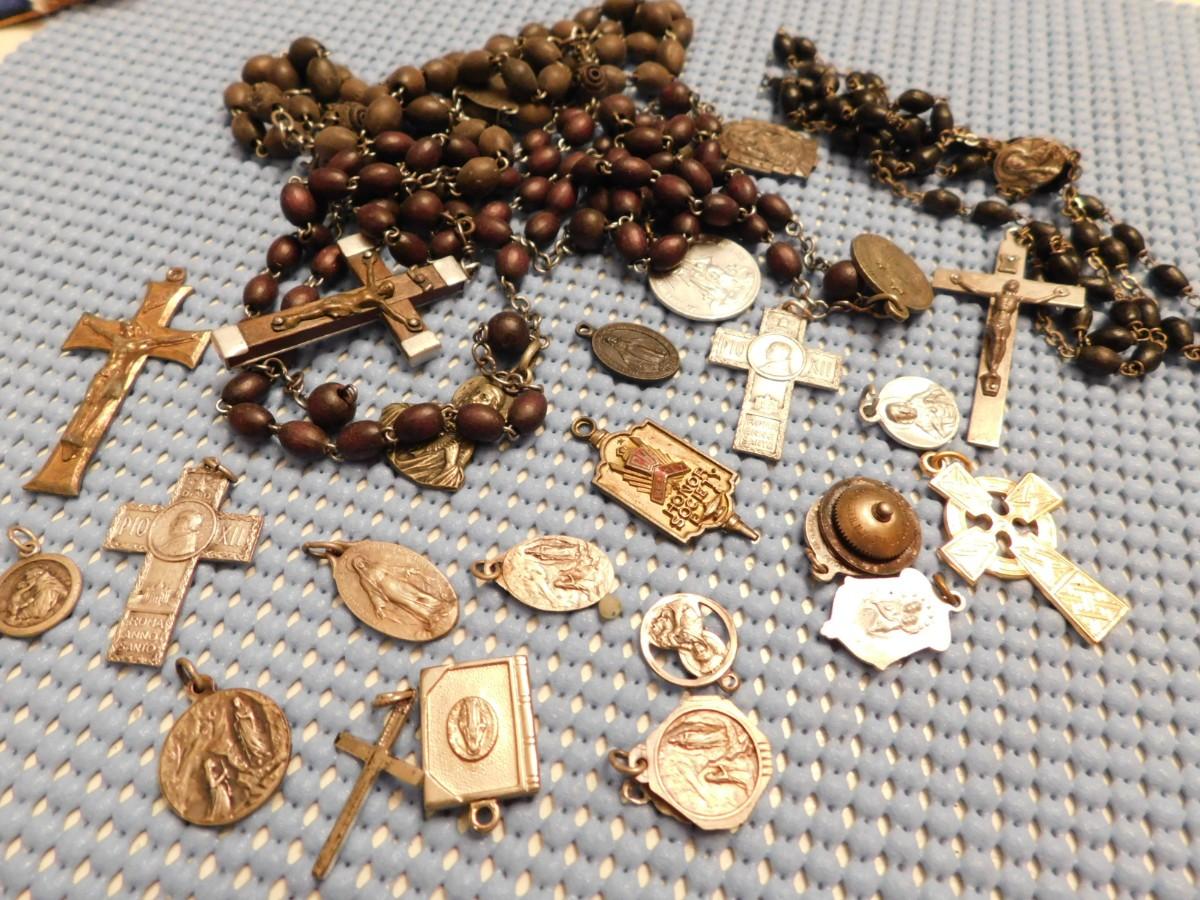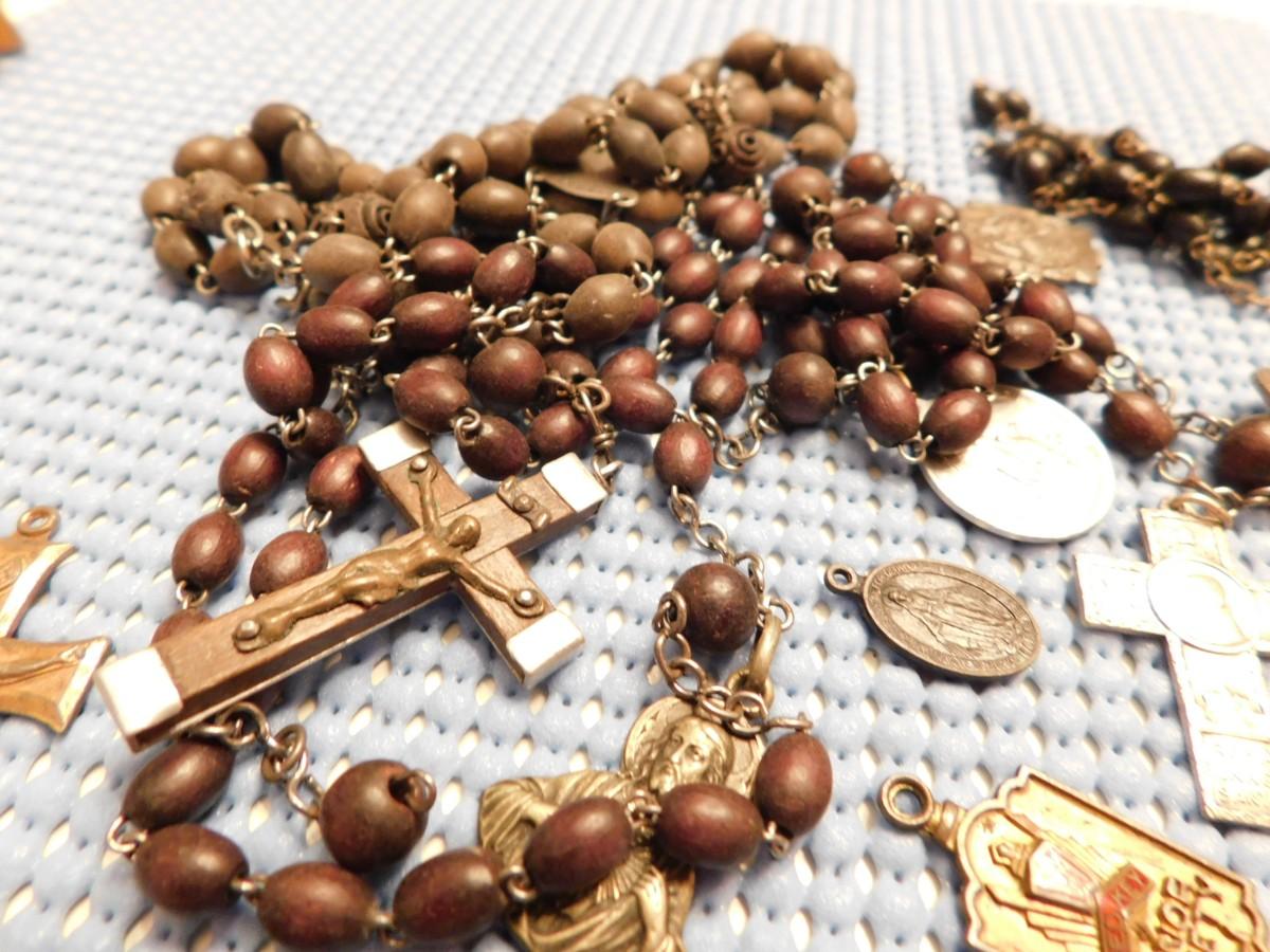 Early Rosary Beads Crosses Pendants Religious Lot