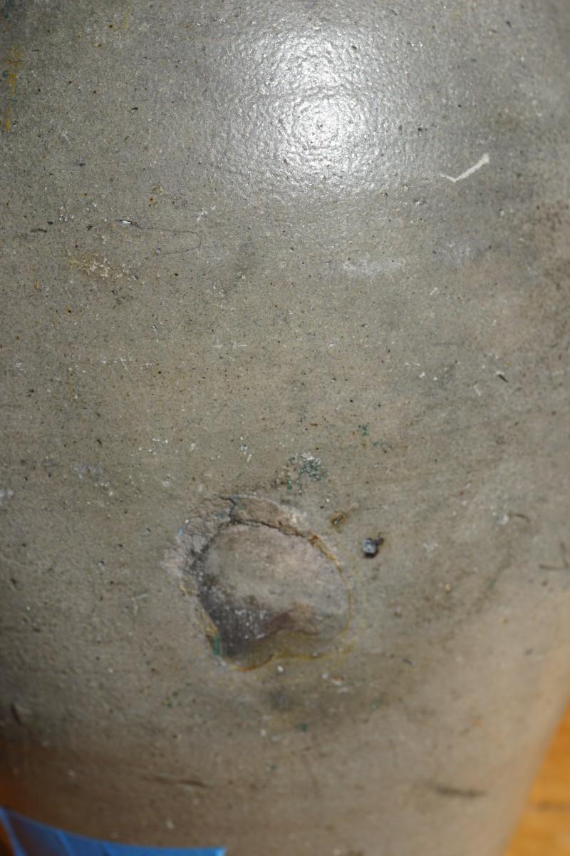 smooth area on back, repair? 'see handle. old repair could be kiln issue.