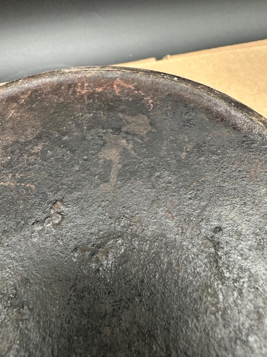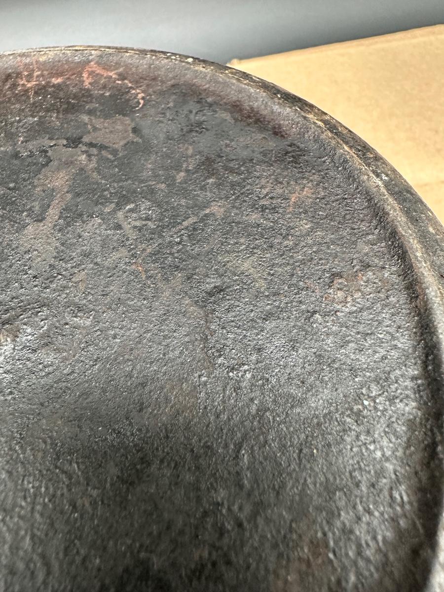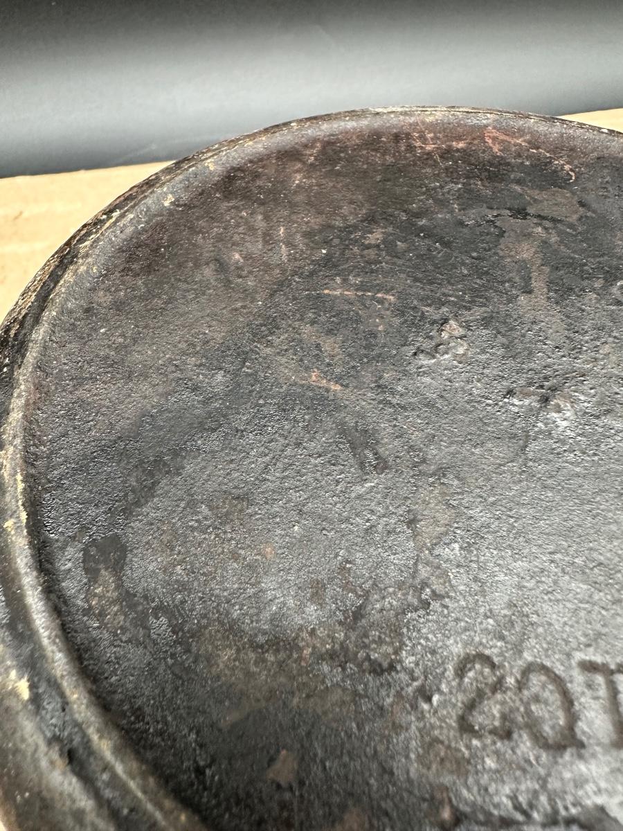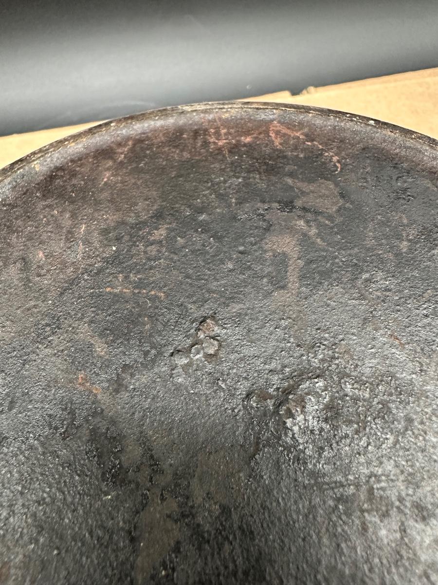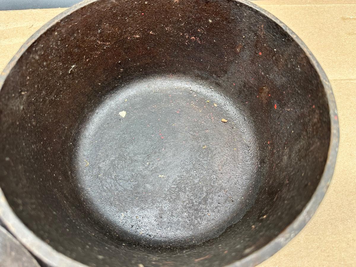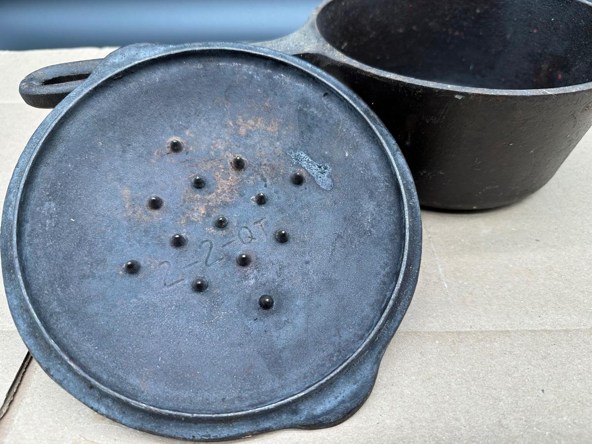 Early unmarked 2 quart cast iron saucepan with matching lid.
