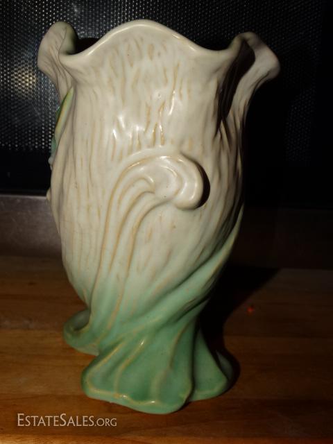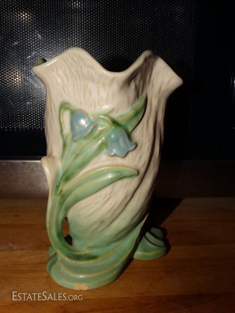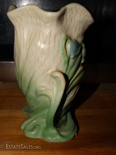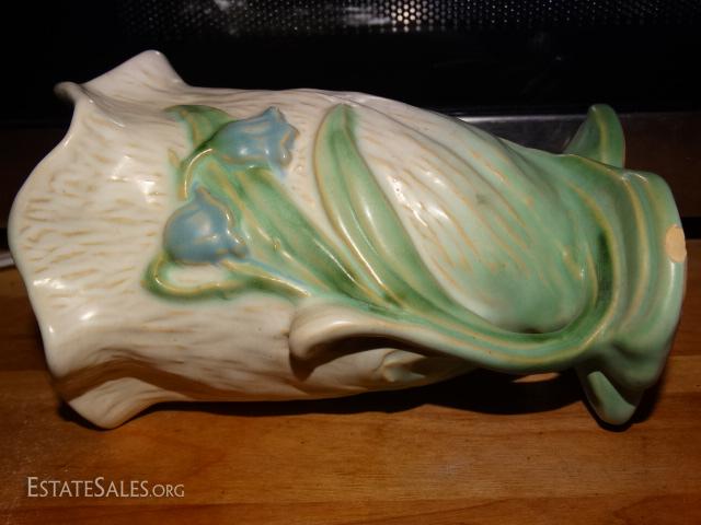 Early vintage WELLER matte finish vase w/blue bell like flowers
