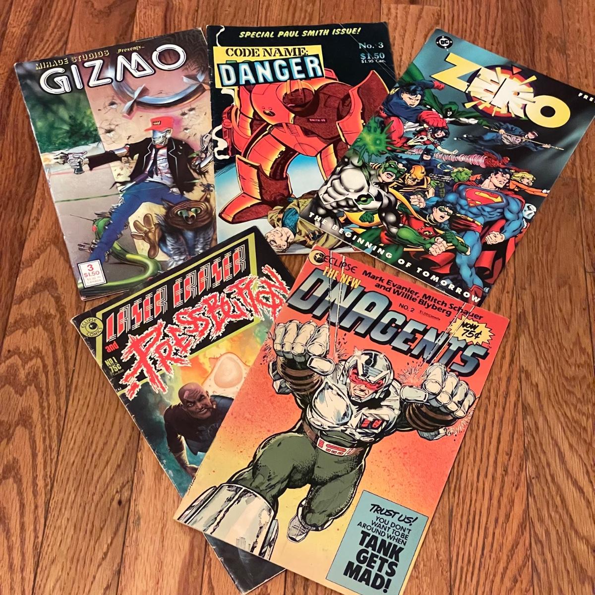 Early Volumes of Laser Eraser, The New DNA Agents, Gizmo, and Code Name Danger. A Marvel advertisement pamphlet is also included. See images. Shipping available.