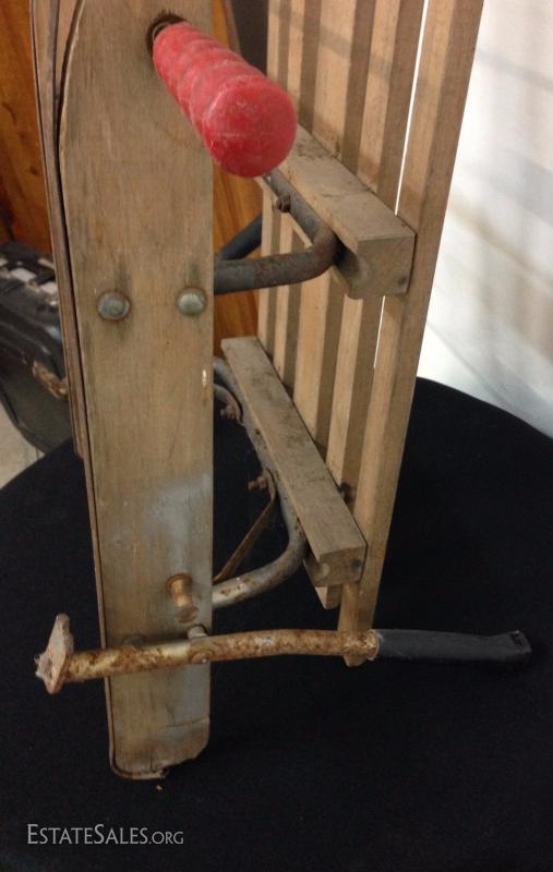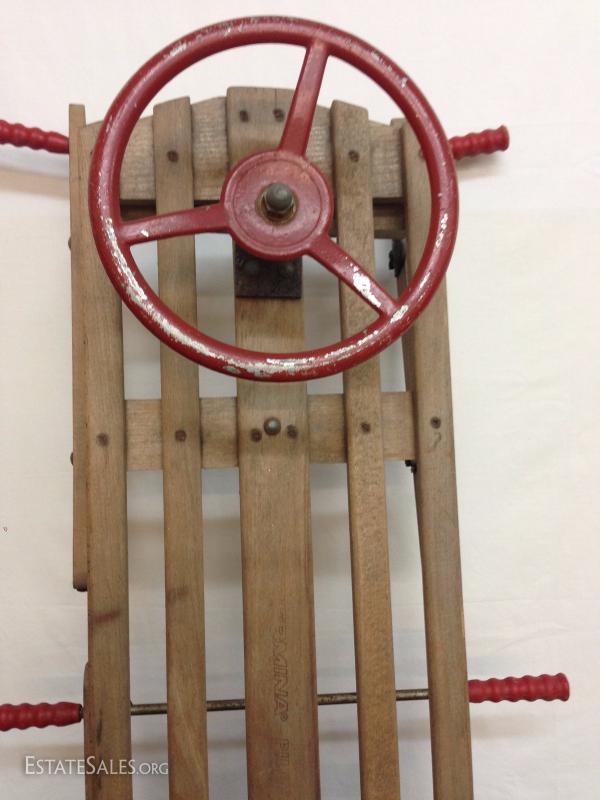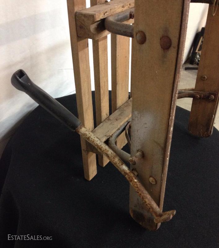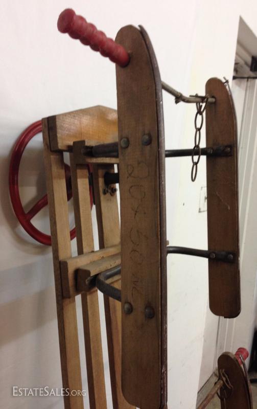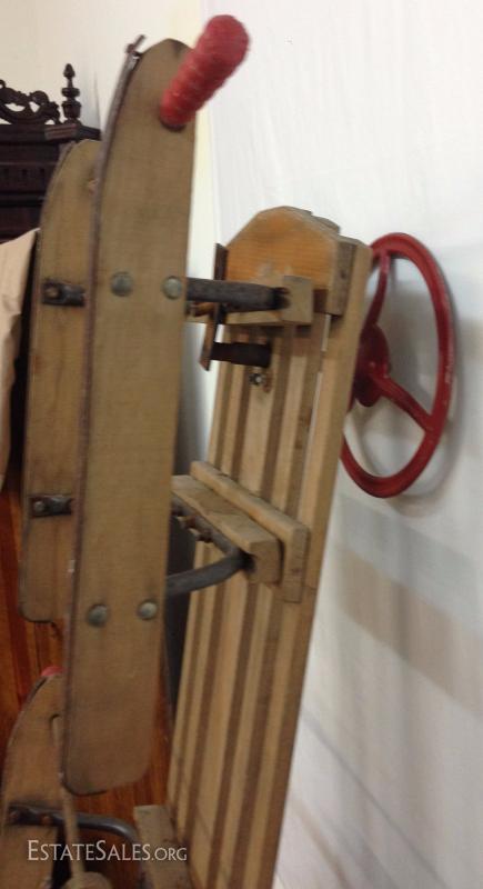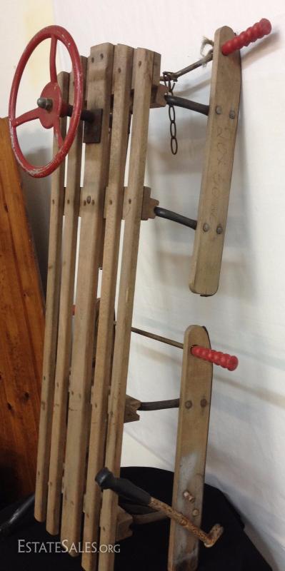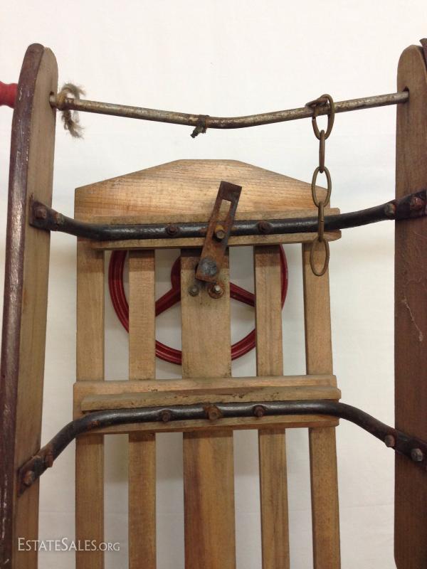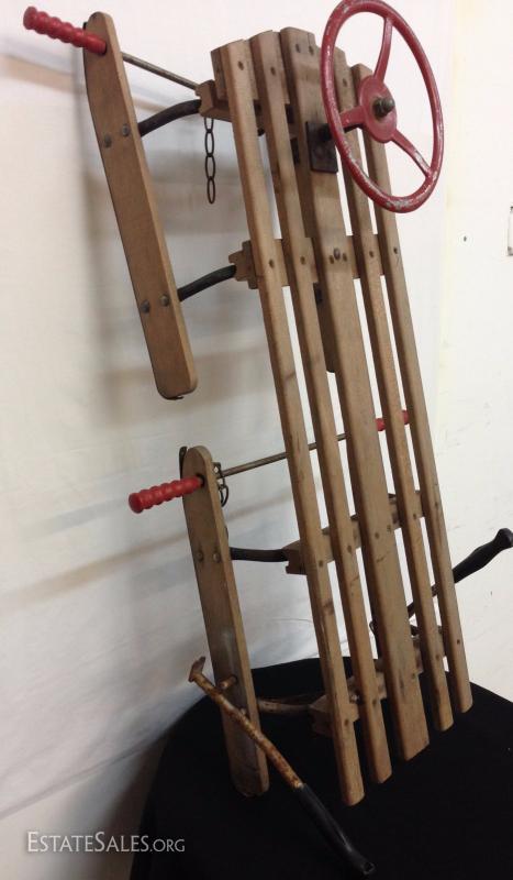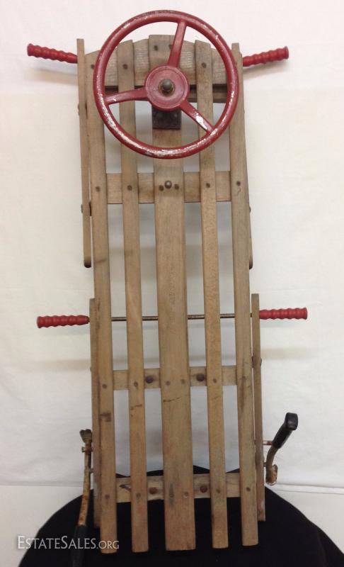 Early Wood Sled with Steering Wheel. Please view photos at full screen size for best detail.