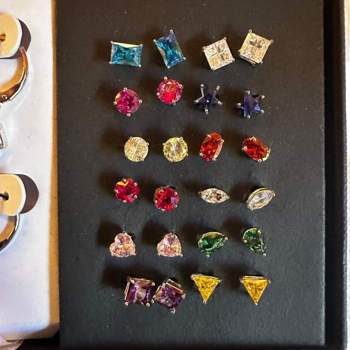 Earring Box Chock Full of Colorful Studs & Dangling Earrings