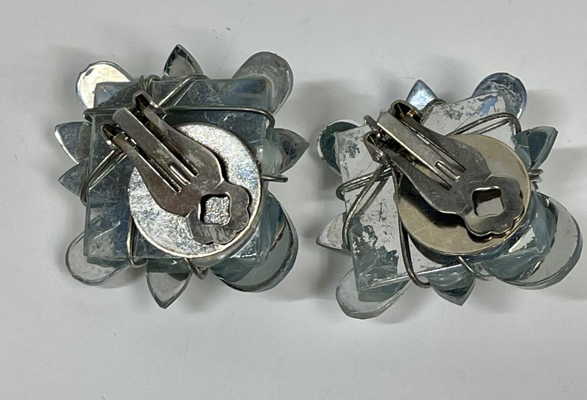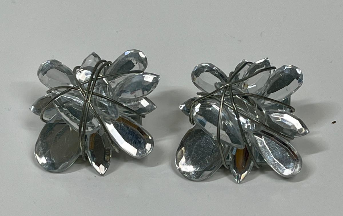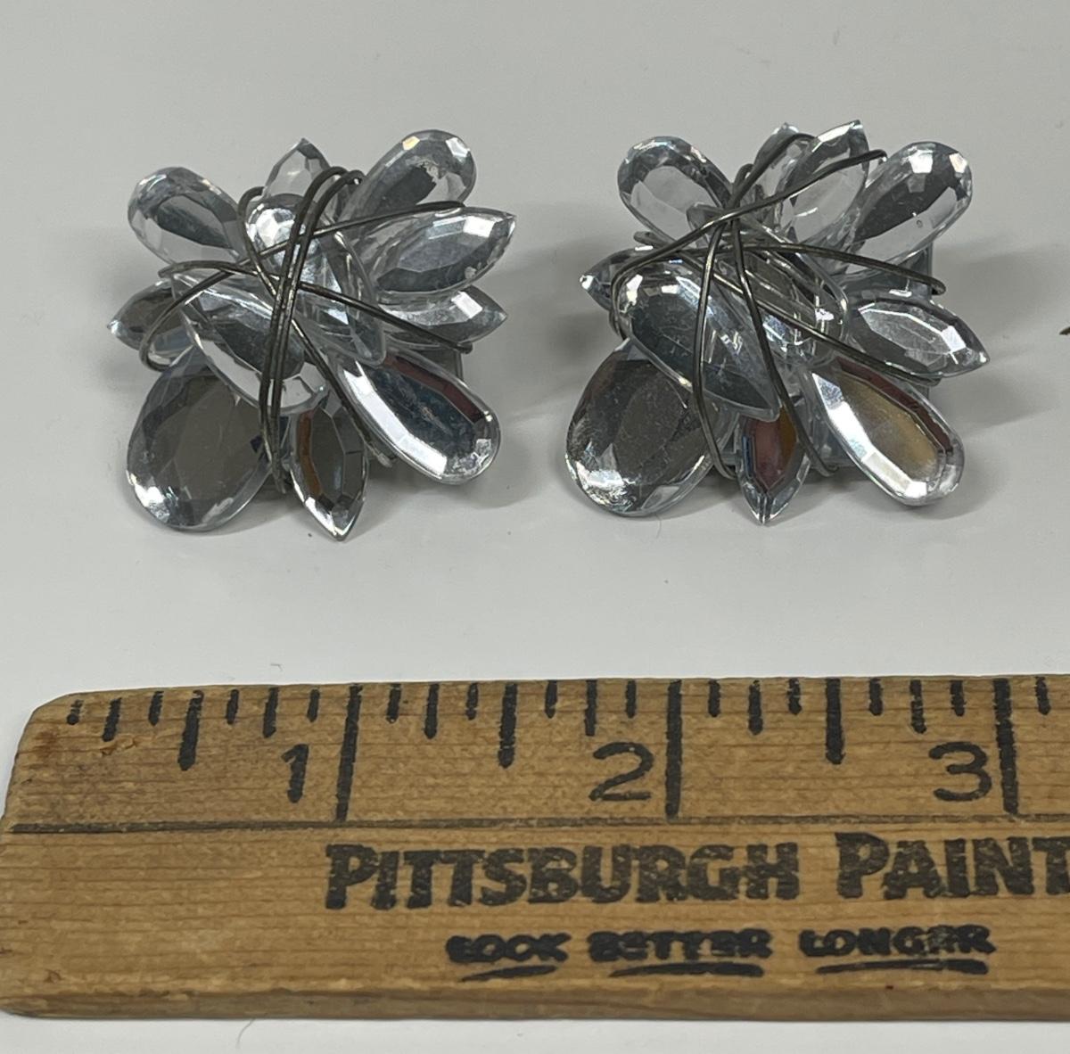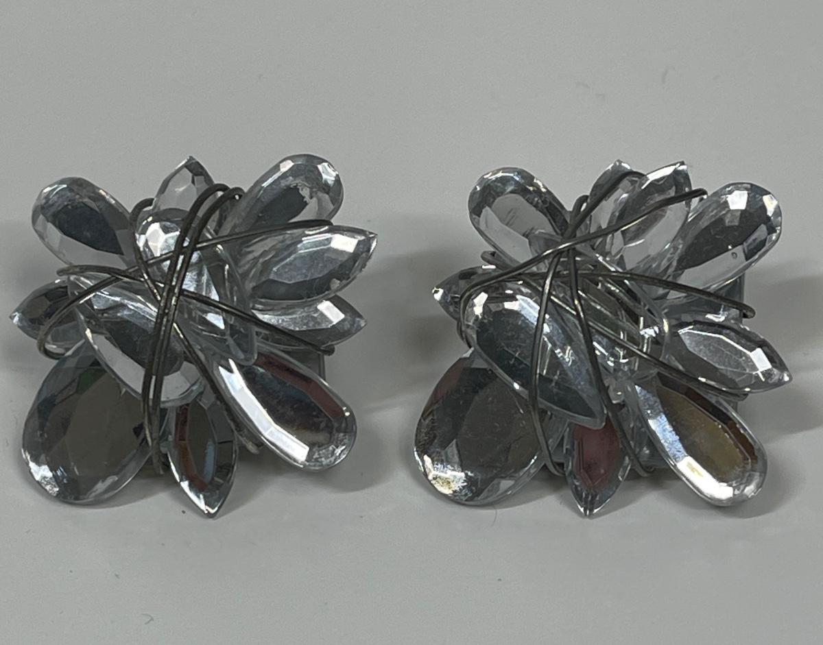 Fanciful, starburst-like arrangement for this pair of clip-on earrings. Good condition.