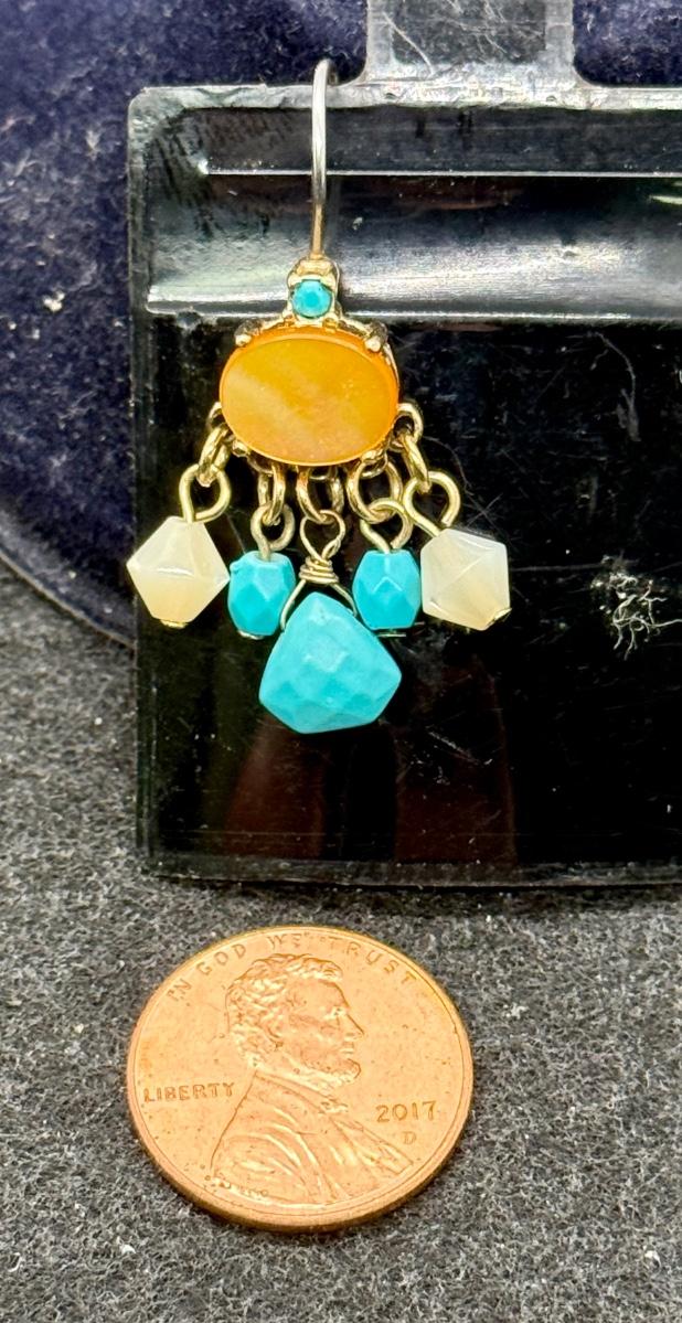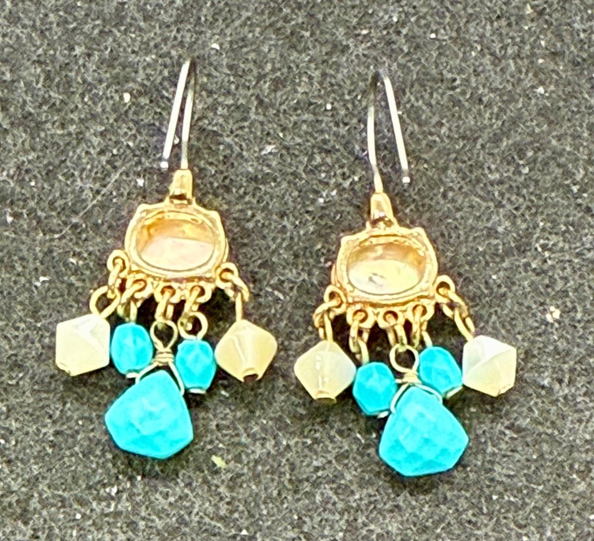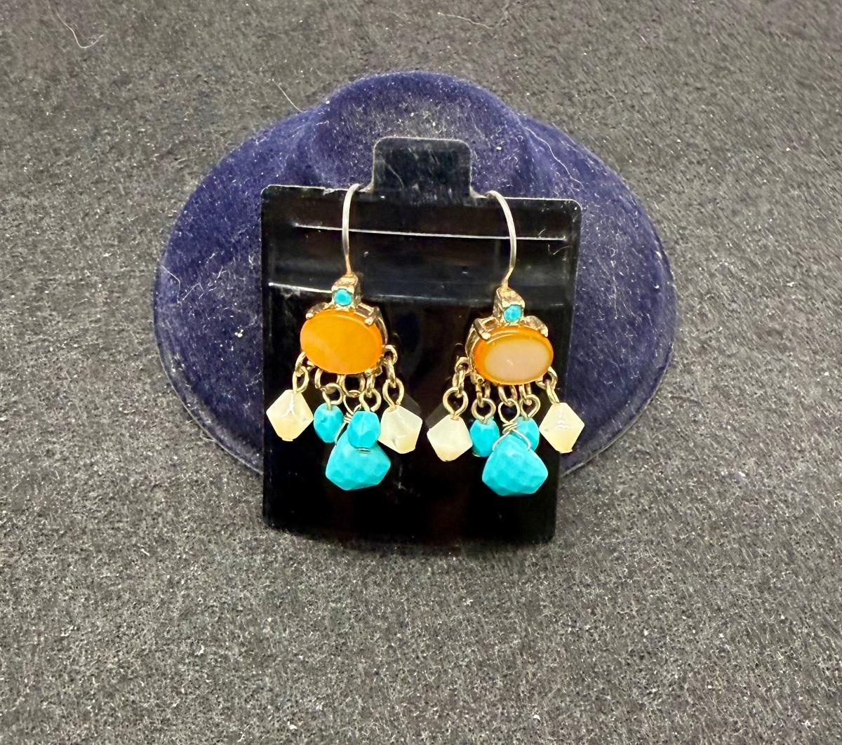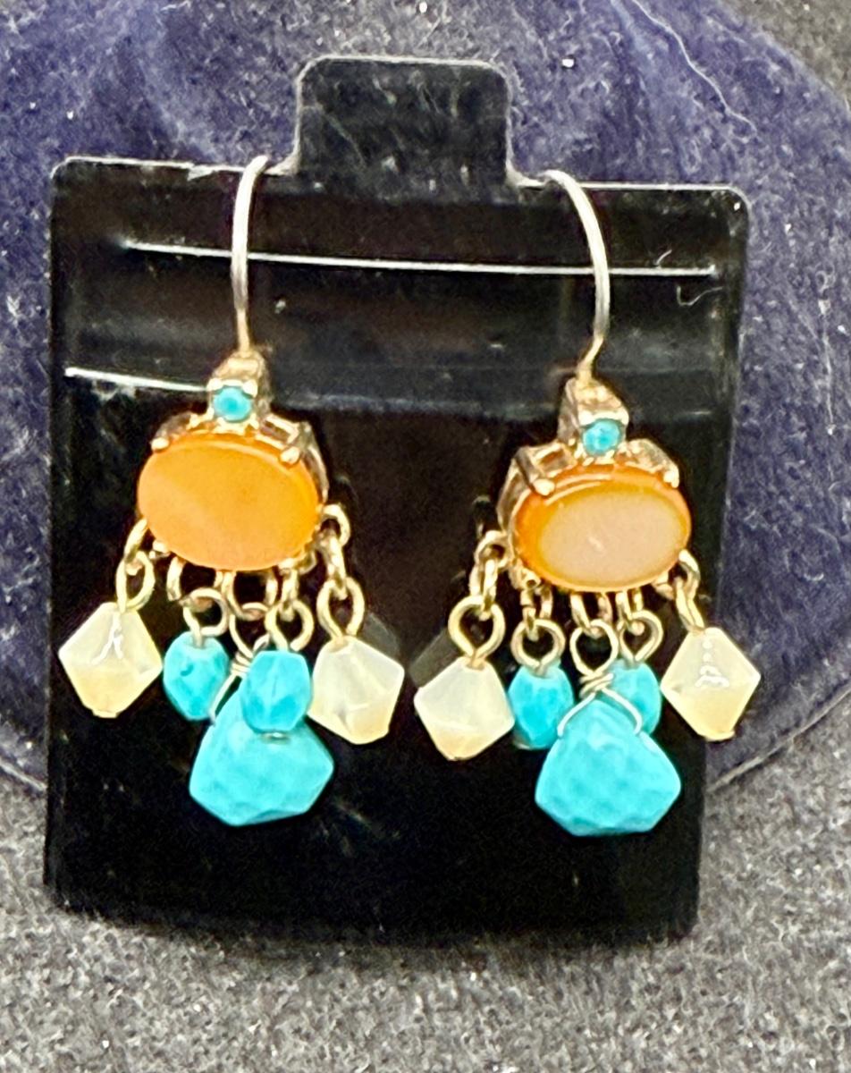 Southwestern Style Turquoise, Amber and White Earrings