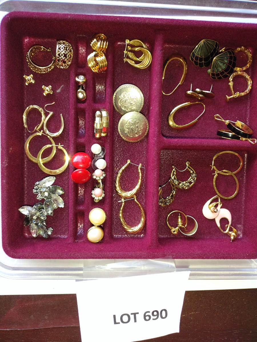Include Avon, clear gemstone clip on. Round button style clip on. Hoop and pearl style.All costume.