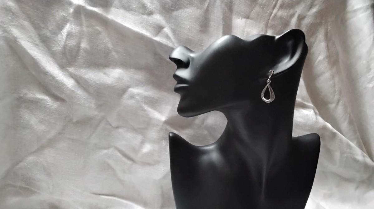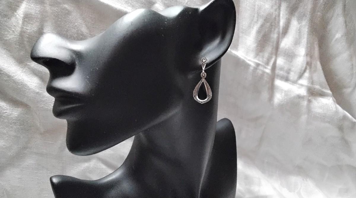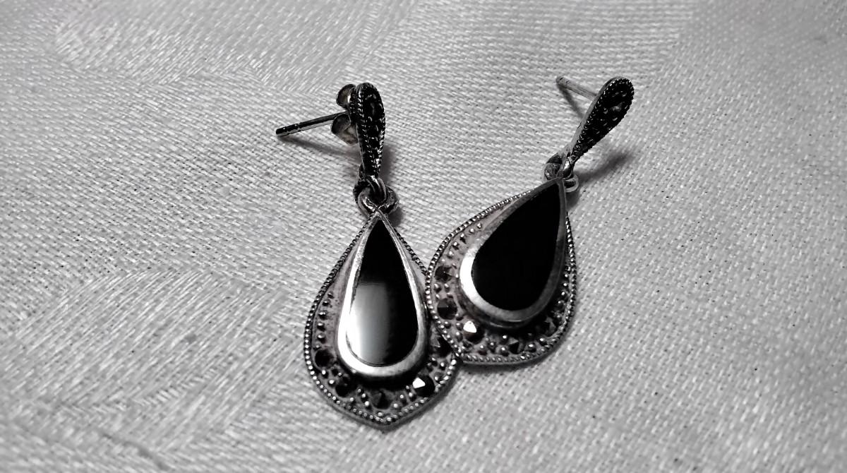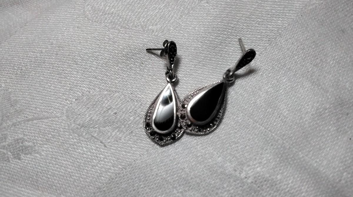 Vintage JBJ Black Onyx And Marcasite 925 Earrings