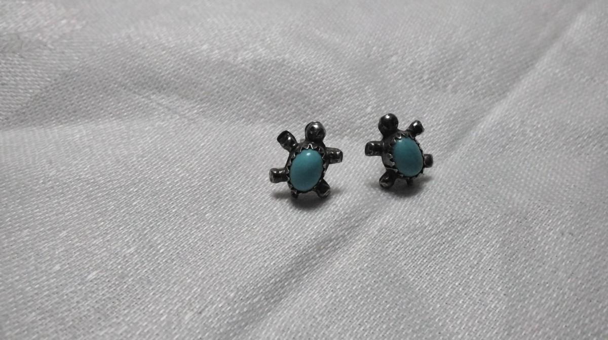 Vintage Turquoise Turtle Stud 925 Earrings