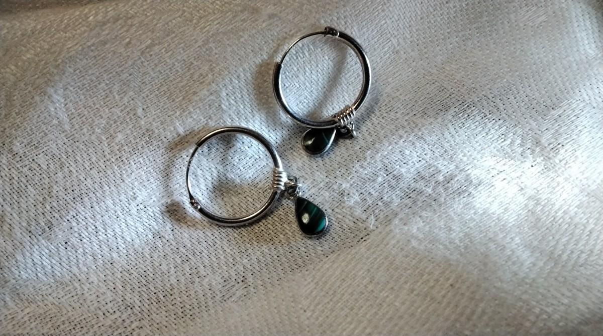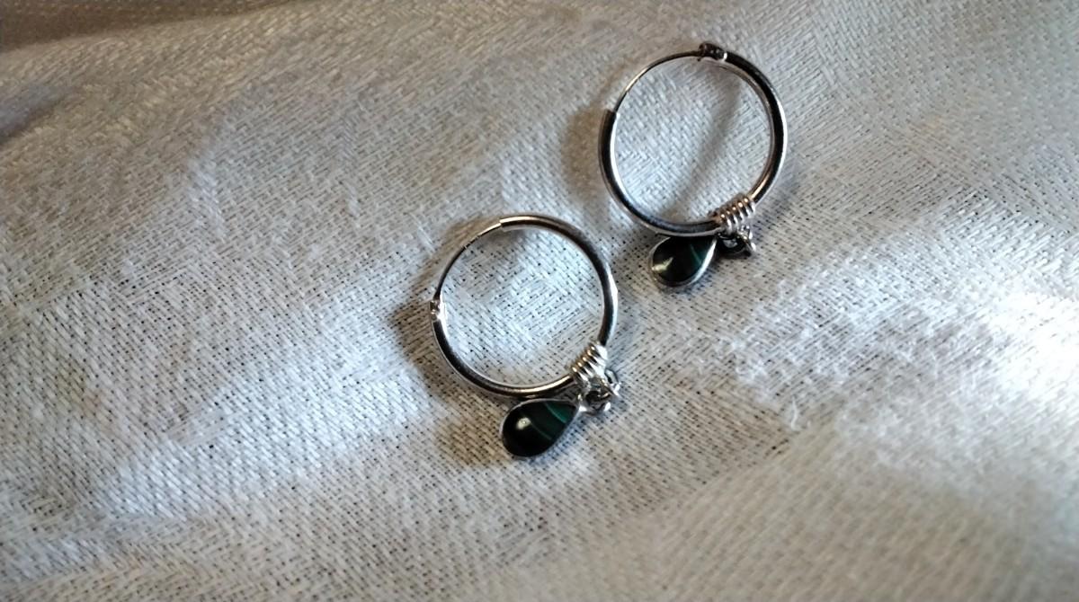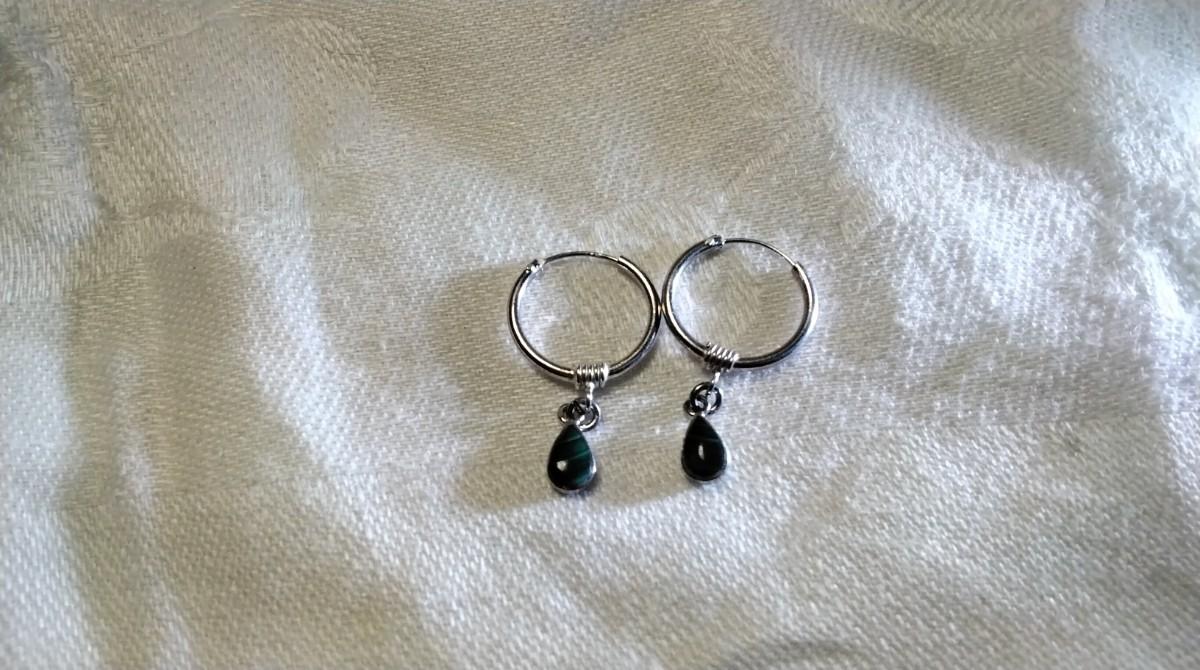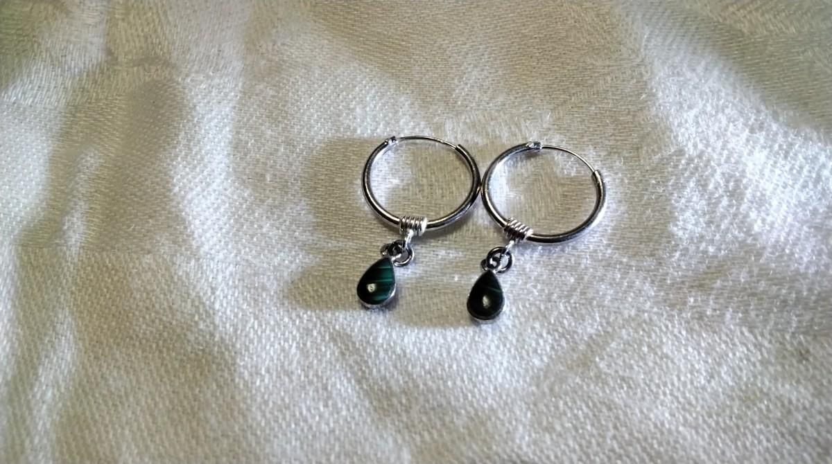 Gorgeous Malachite Dangle 925 Hoop Earrings