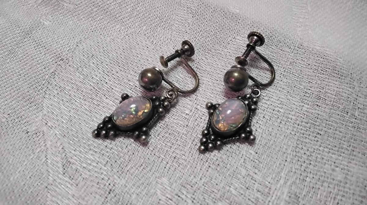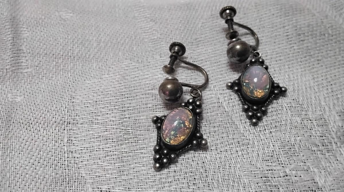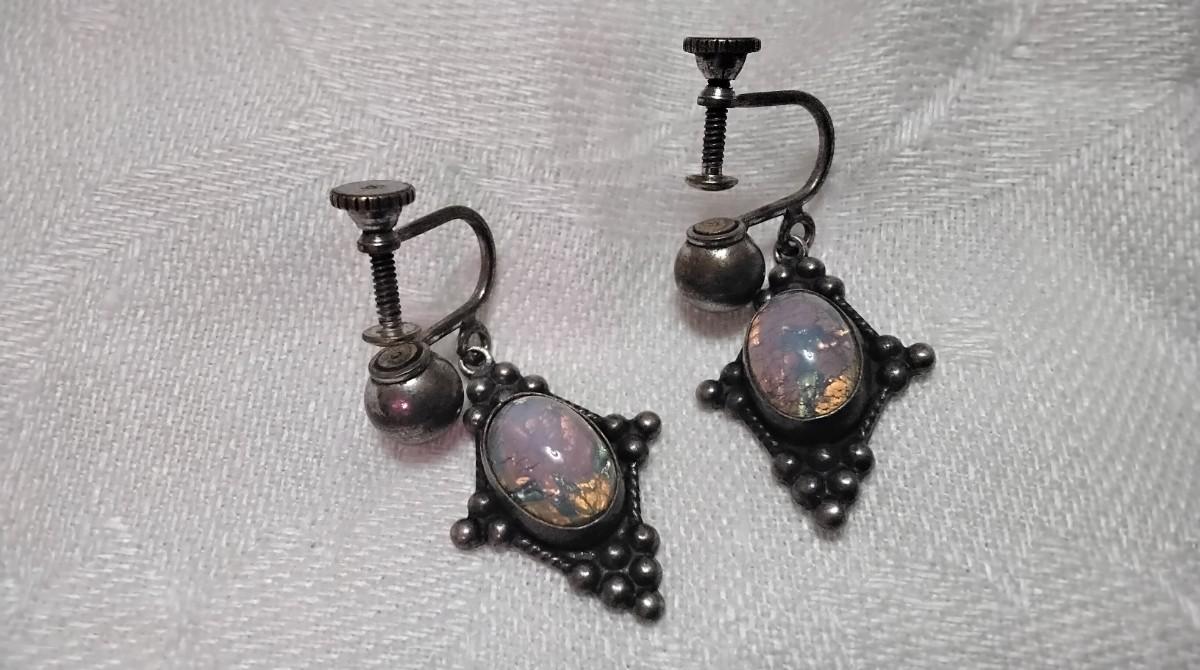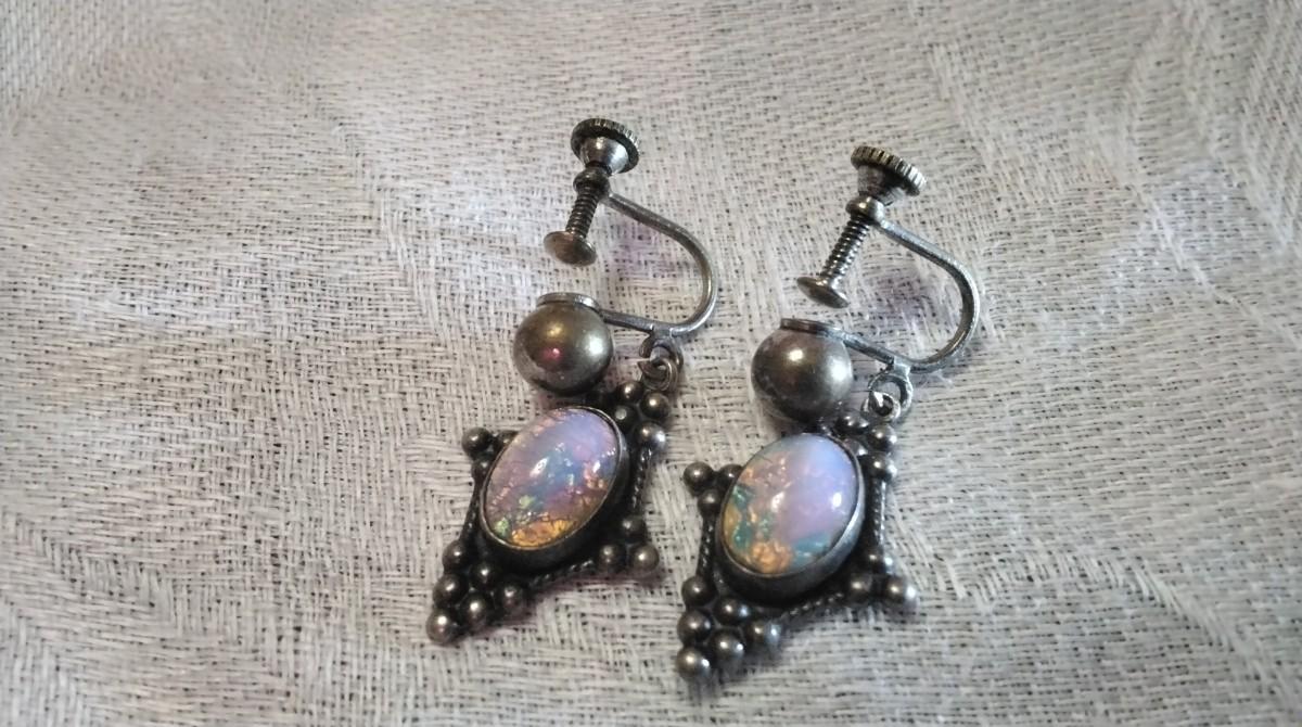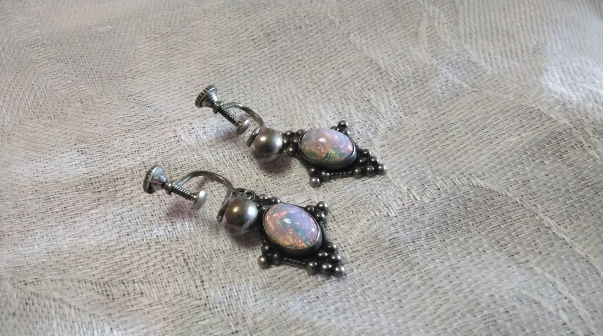 Antique Most Gorgeous Opals Ever Screwback 925 Earrings