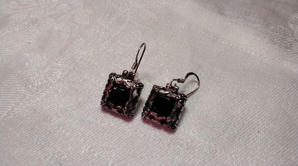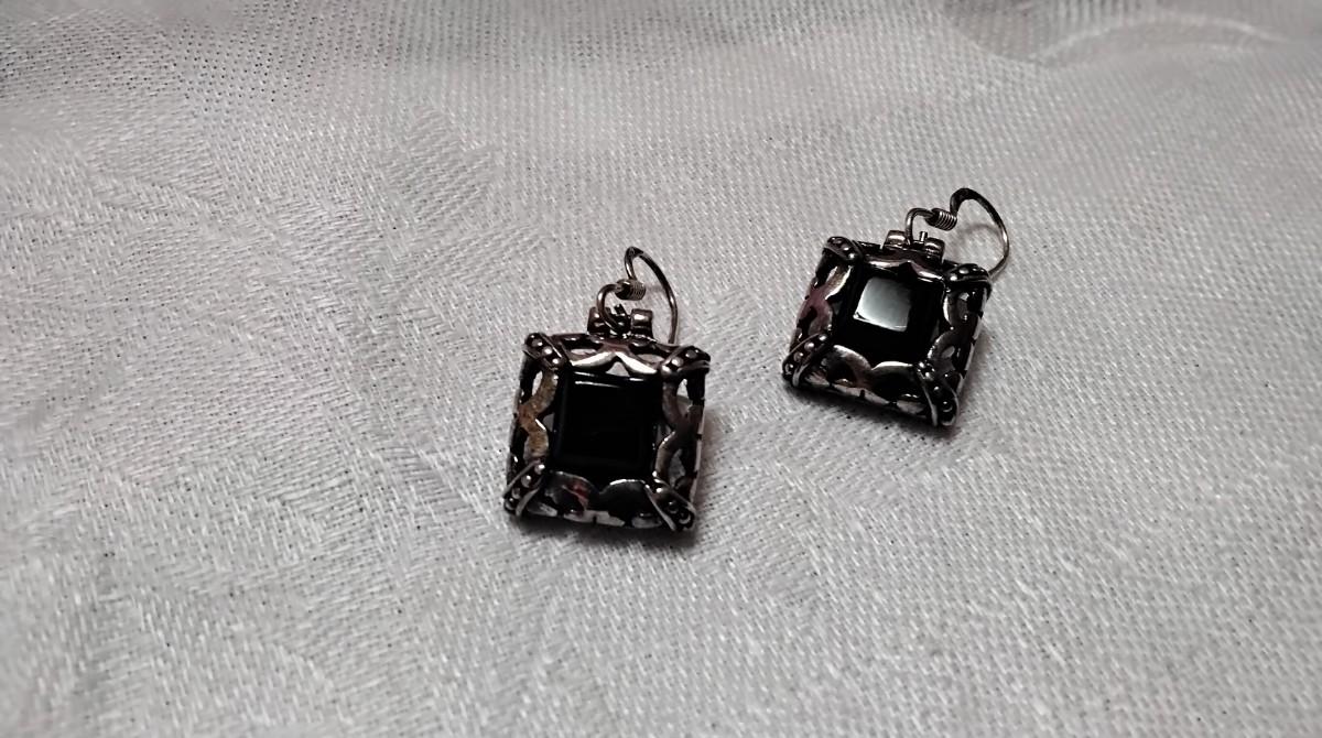 Vintage Stately Onyx 925 Earrings
