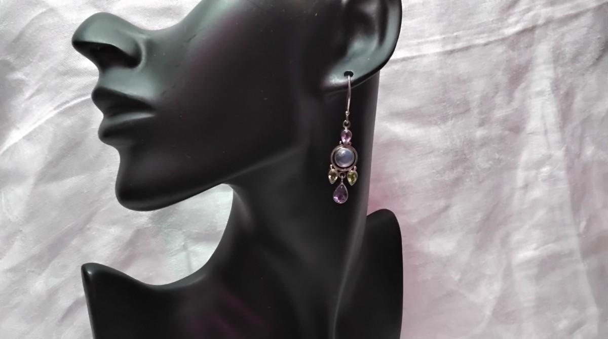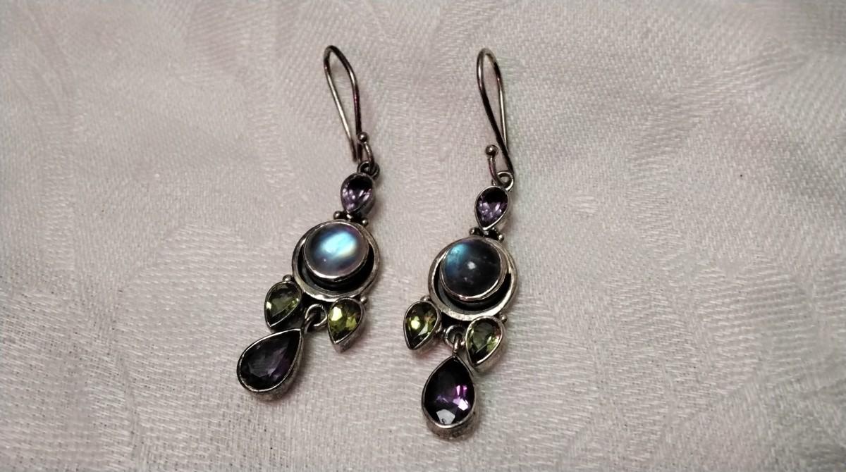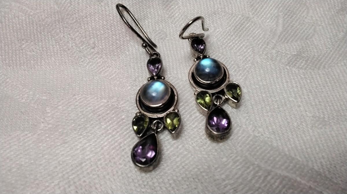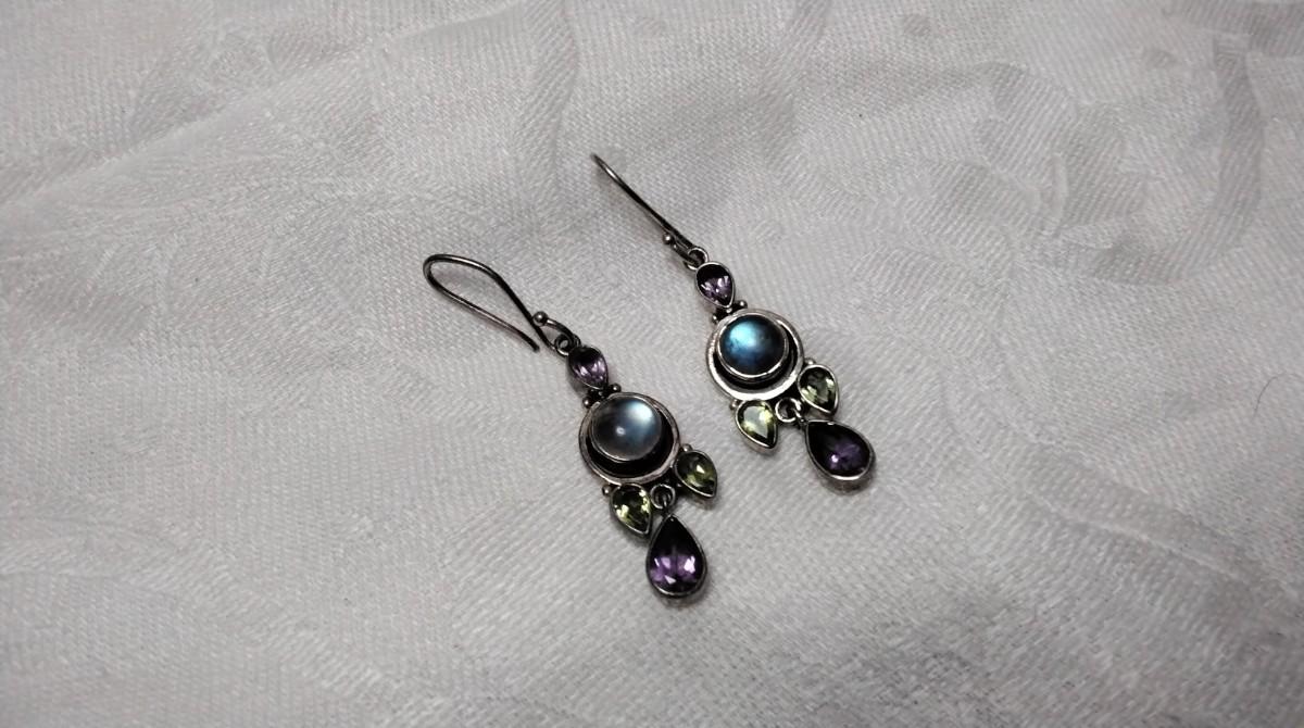 Vintage Moonstone, Peridot and Amethyst 925 Earrings