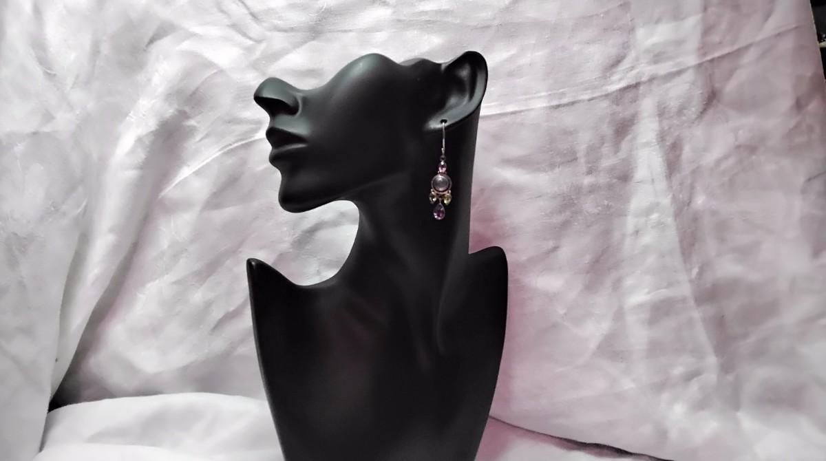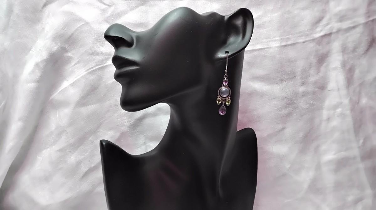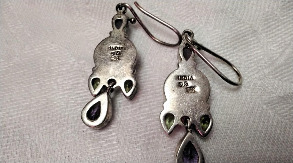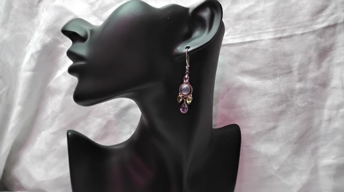 Vintage Moonstone, Peridot and Amethyst 925 Earrings