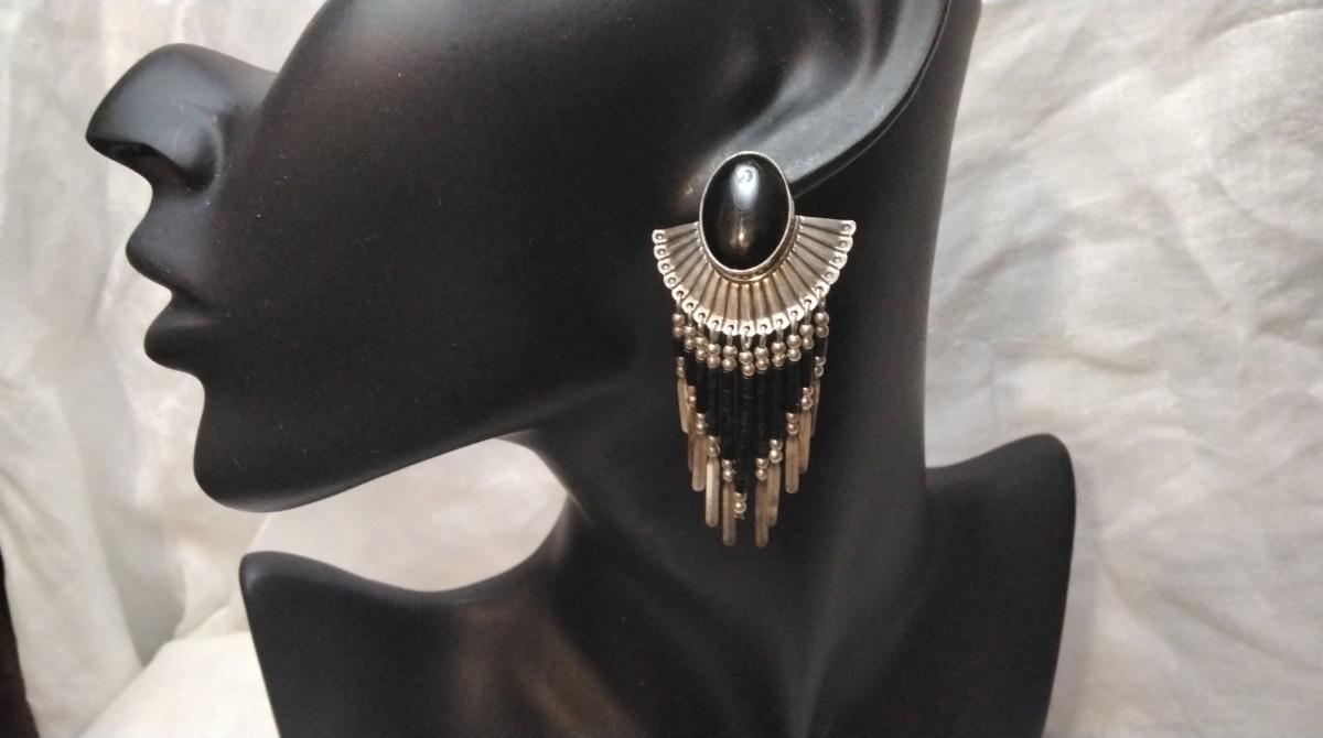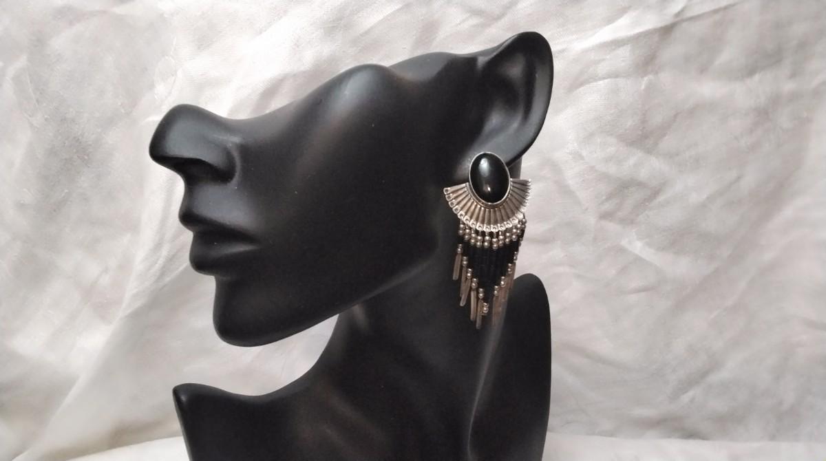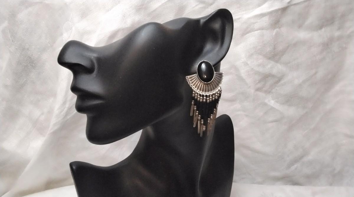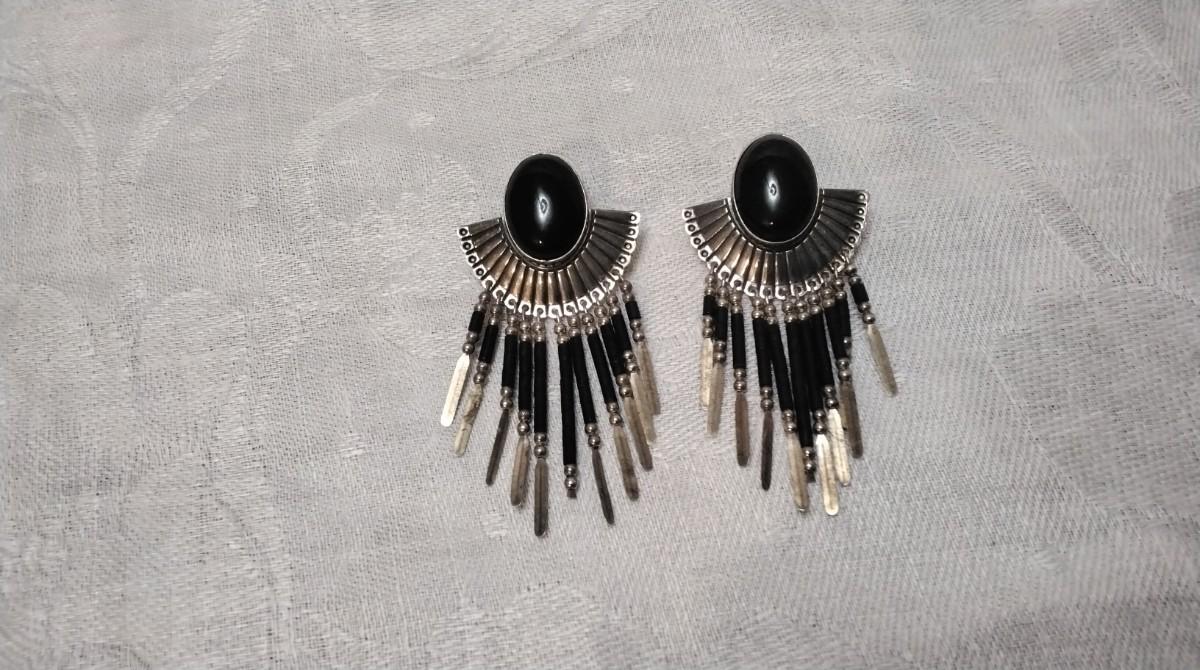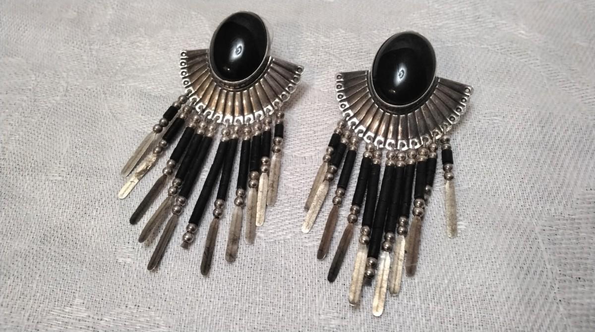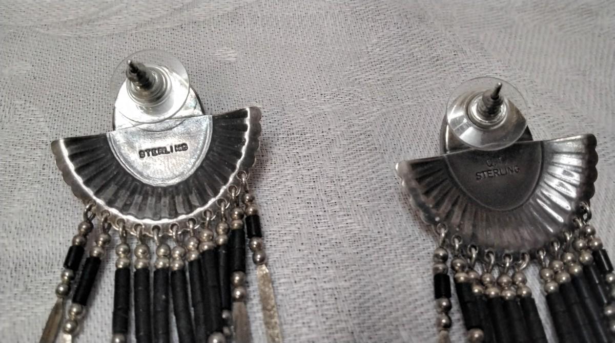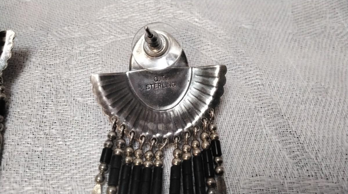 Vintage Navajo Silversmith Q.T. Black Onyx Concho 925 Earrings