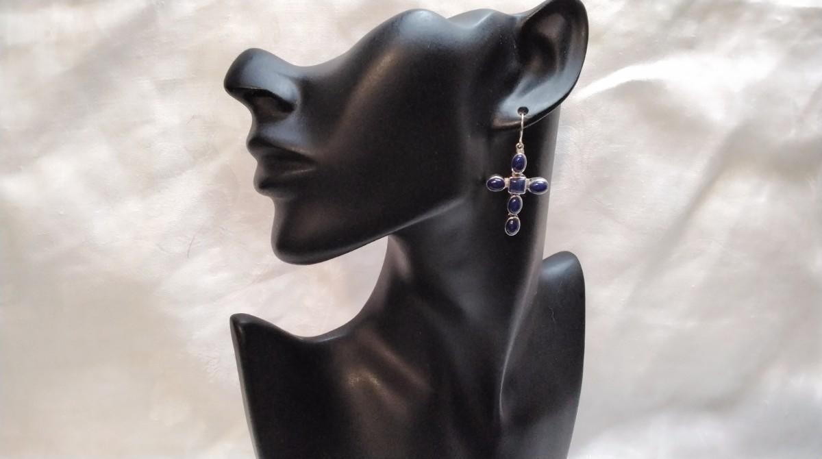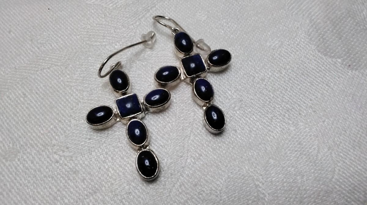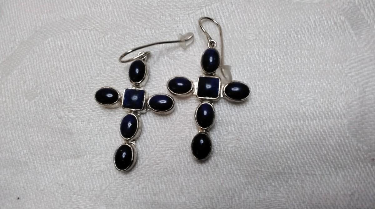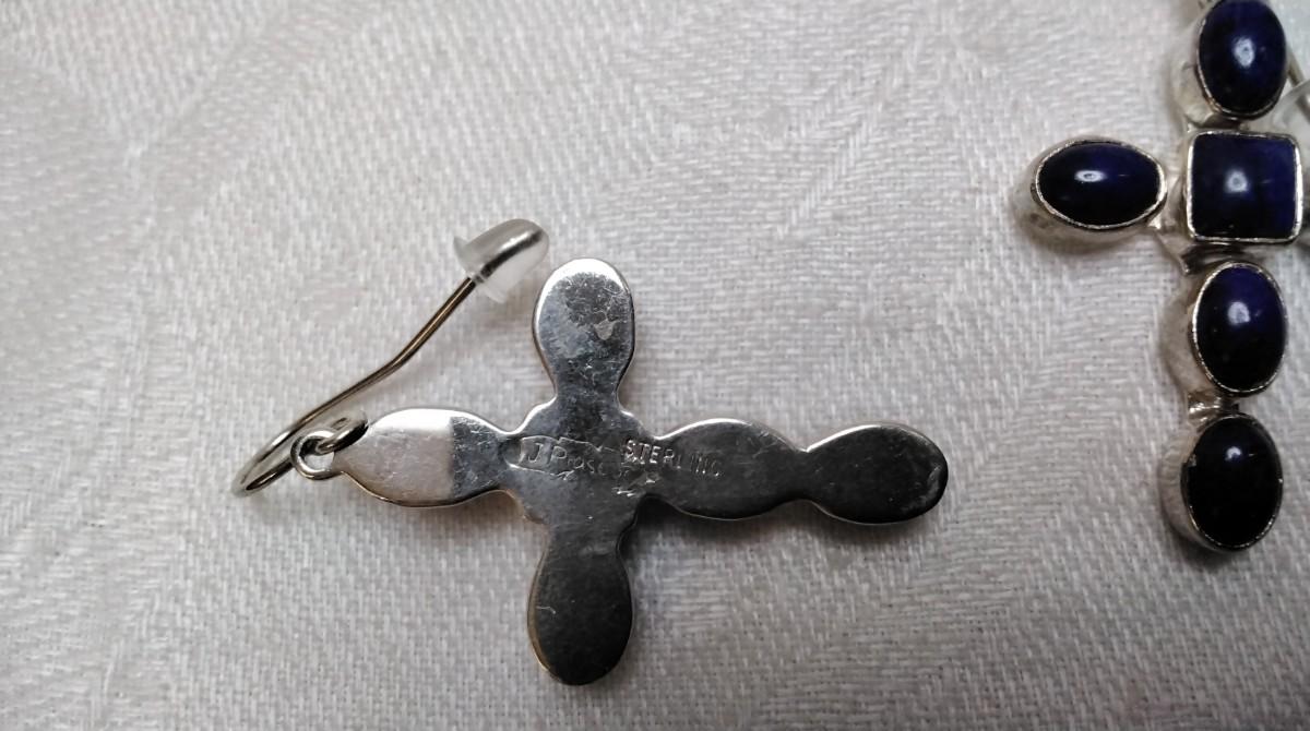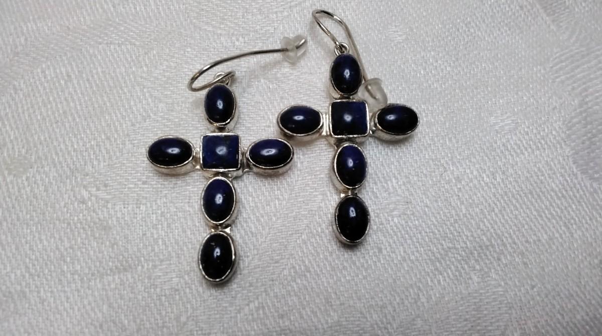 Vintage JP (Navajo) Lapis Lazuli Cross 925 Earrings
