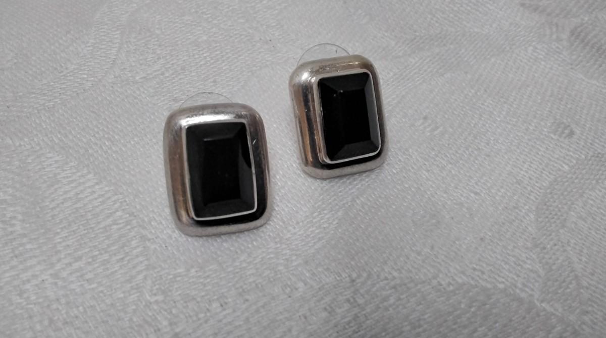 Black Onyx Mexico Silver Earrings