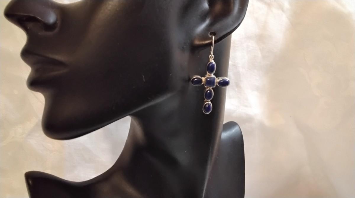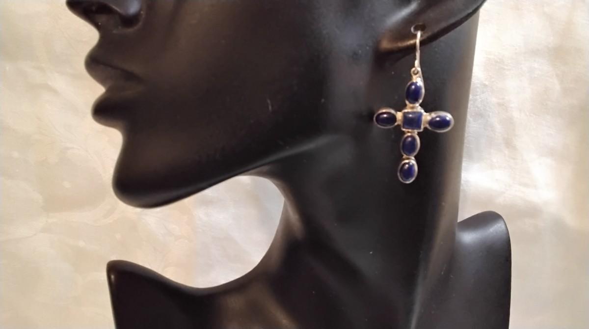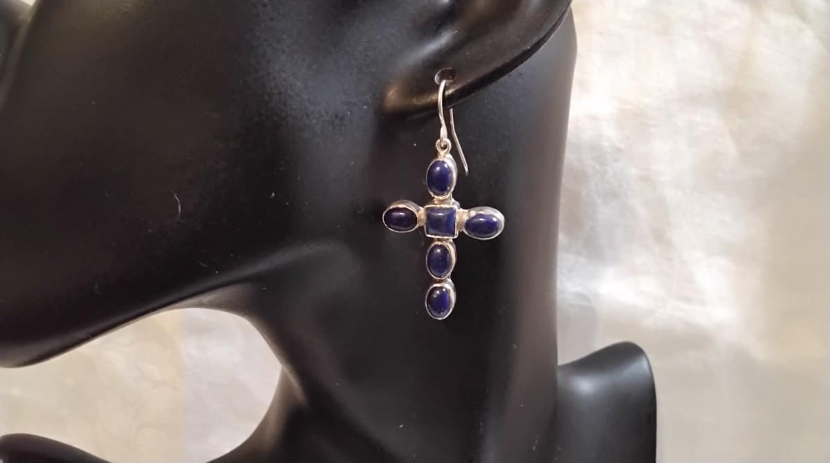 Vintage JP (Navajo) Lapis Lazuli Cross 925 Earrings
