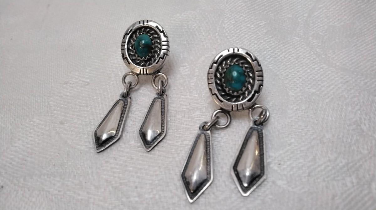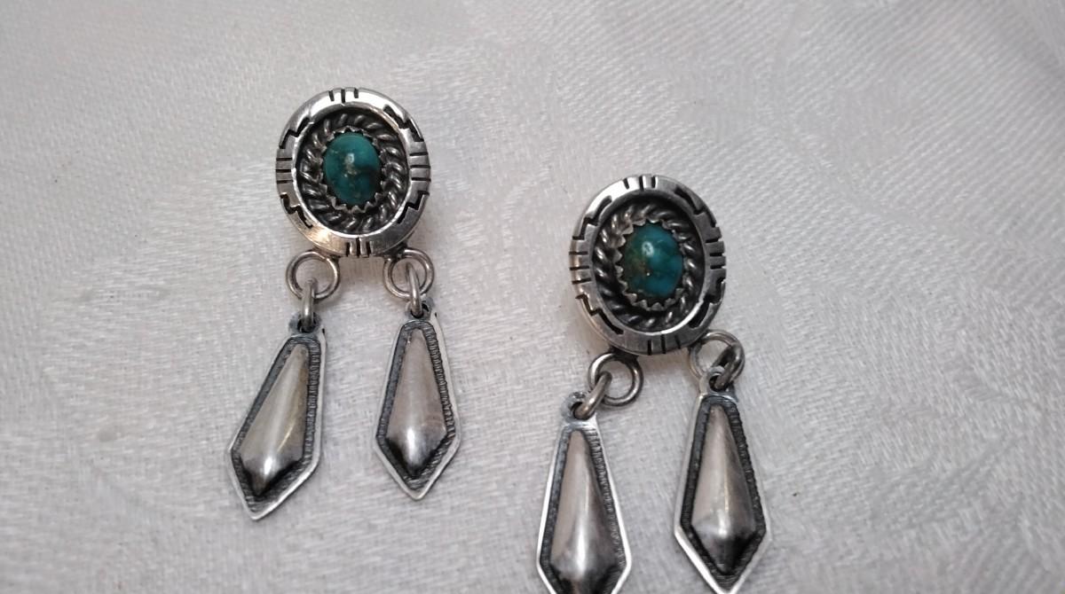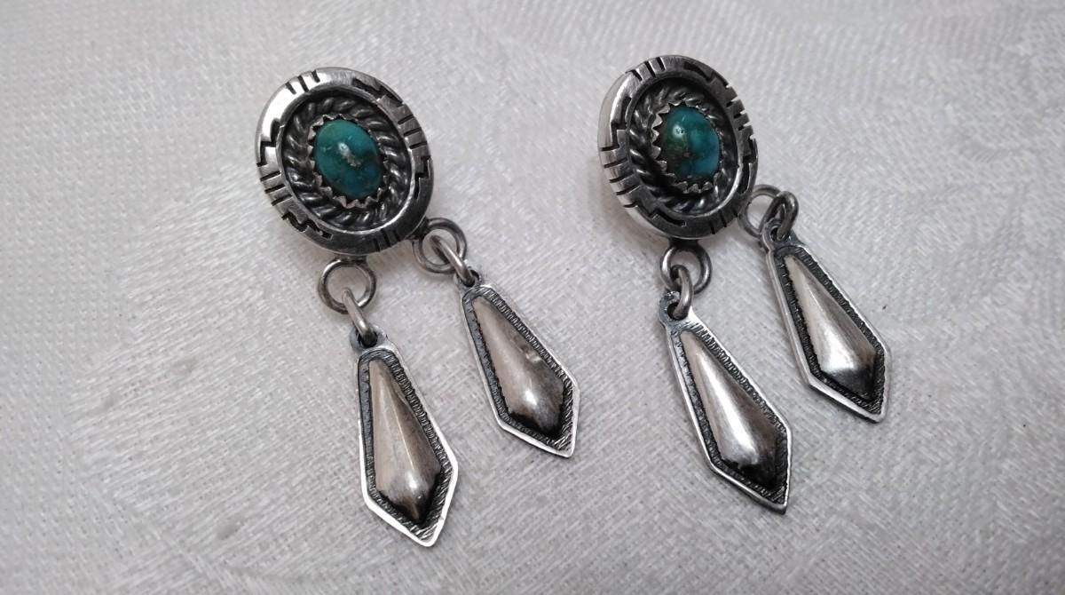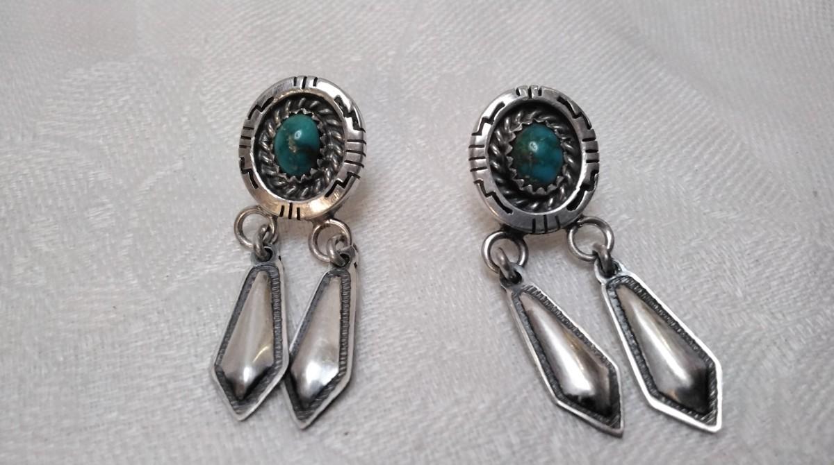Vintage Navajo Turquoise Signed 925 Earrings