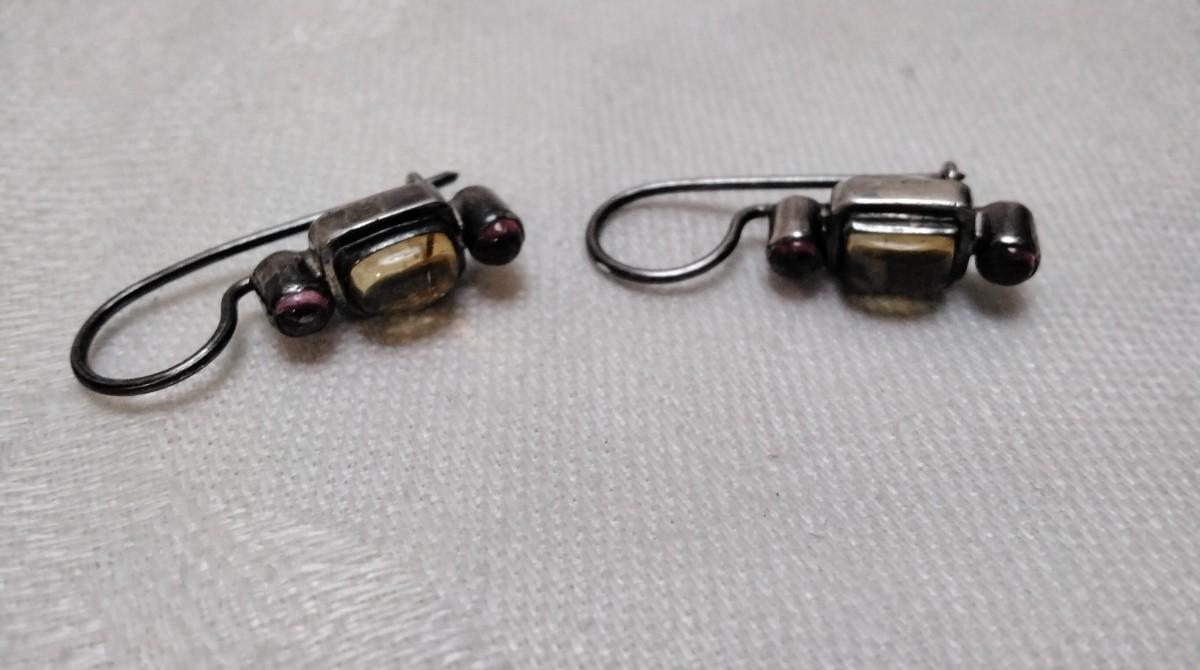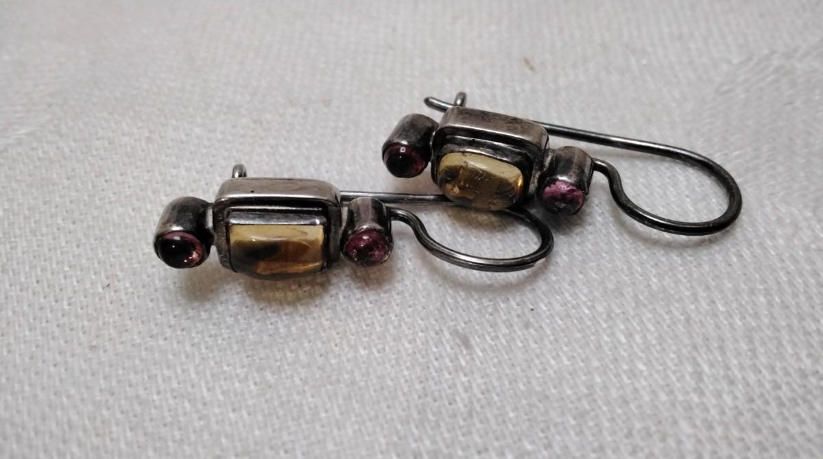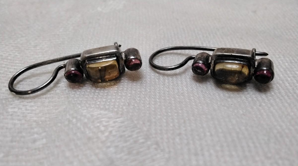 Antique Citrine and Rhodolite Garnet 925 Earrings