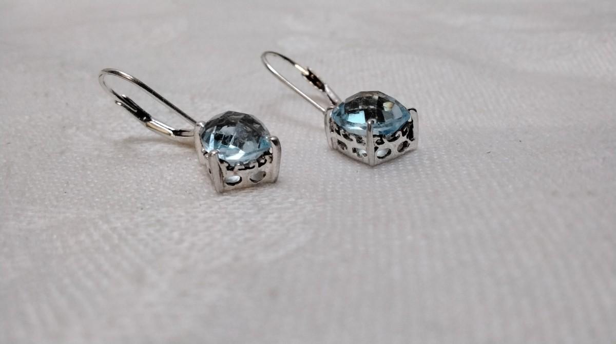 Vintage Solitaire Aquamarine 925 Earrings