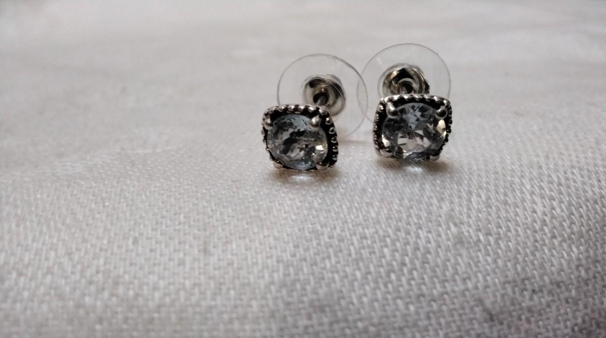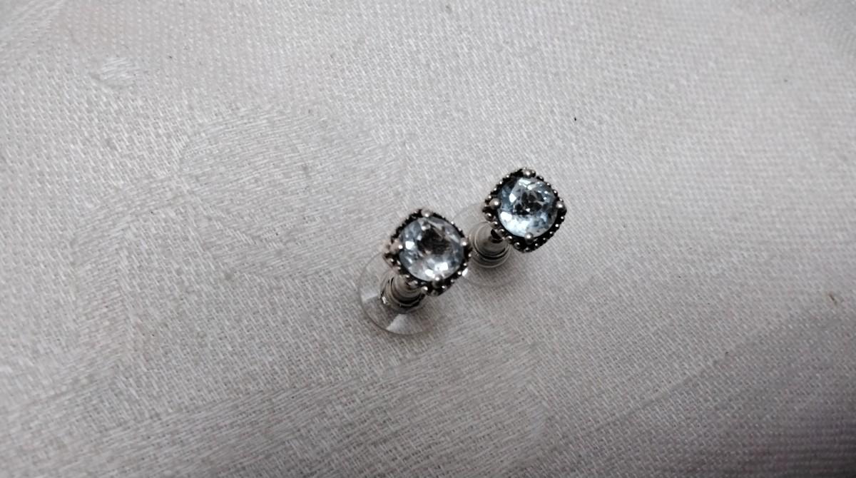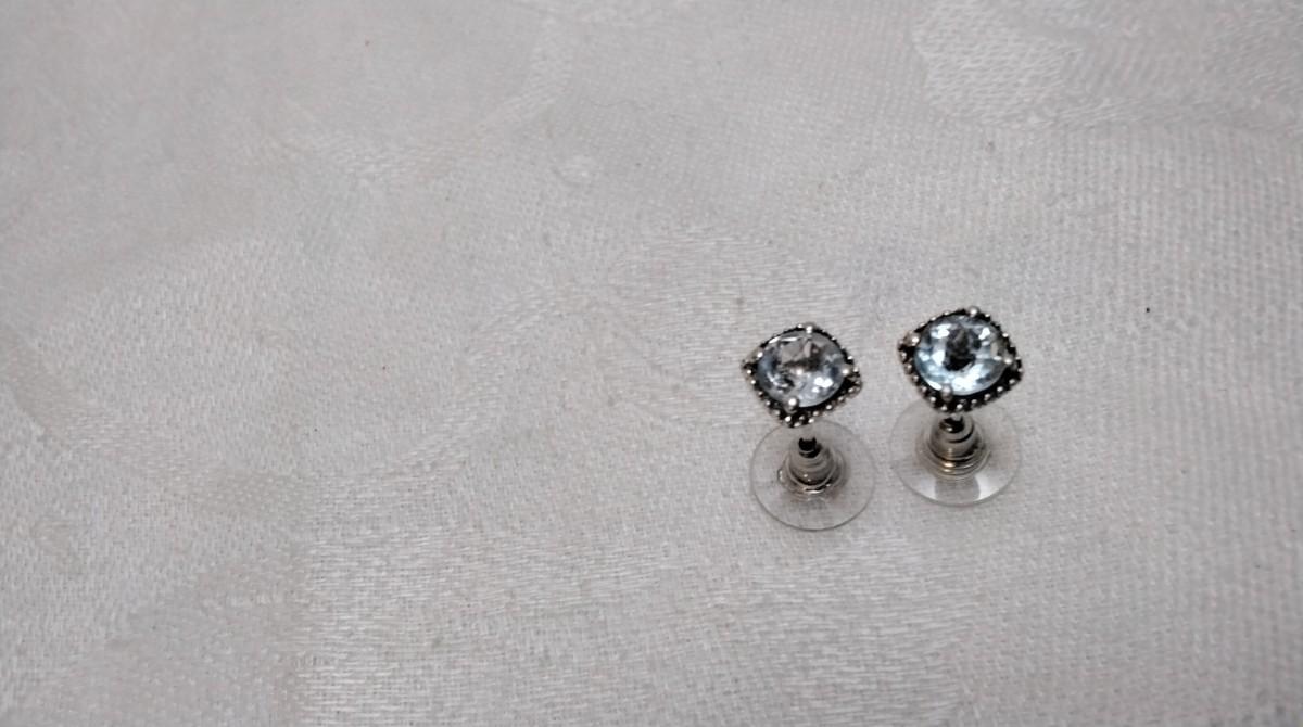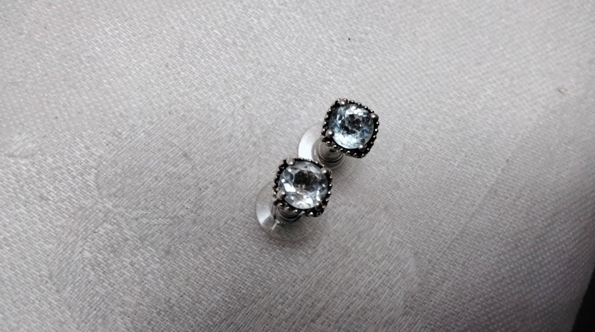 Vintage Aquamarine and White Sapphires 925 Post Earrings