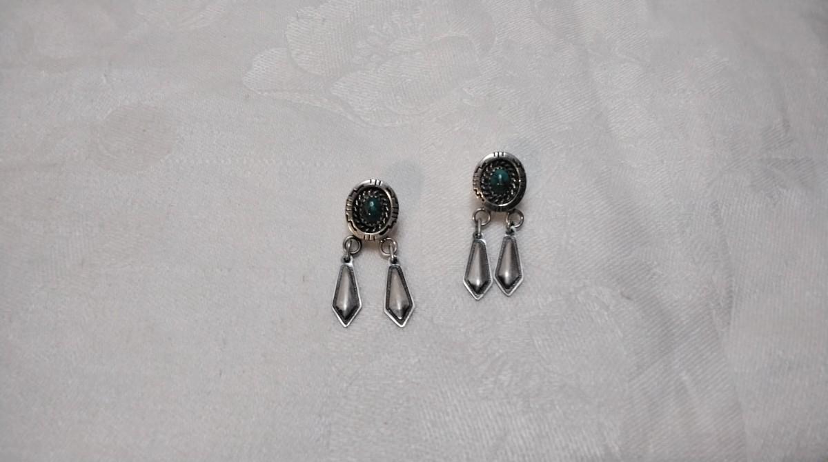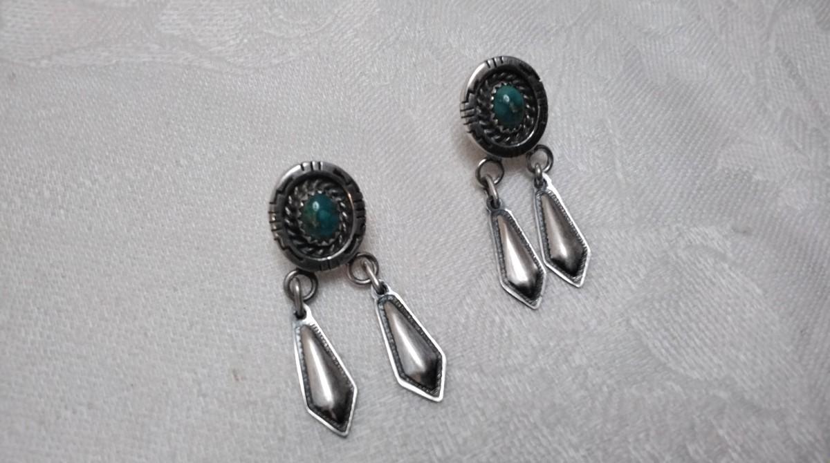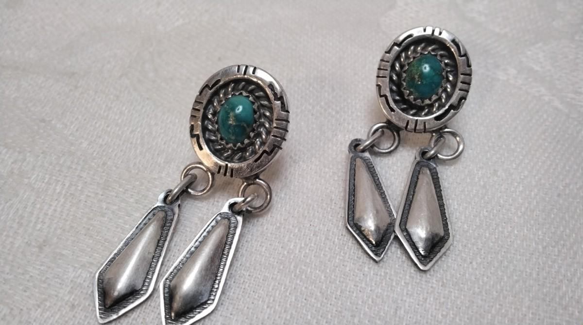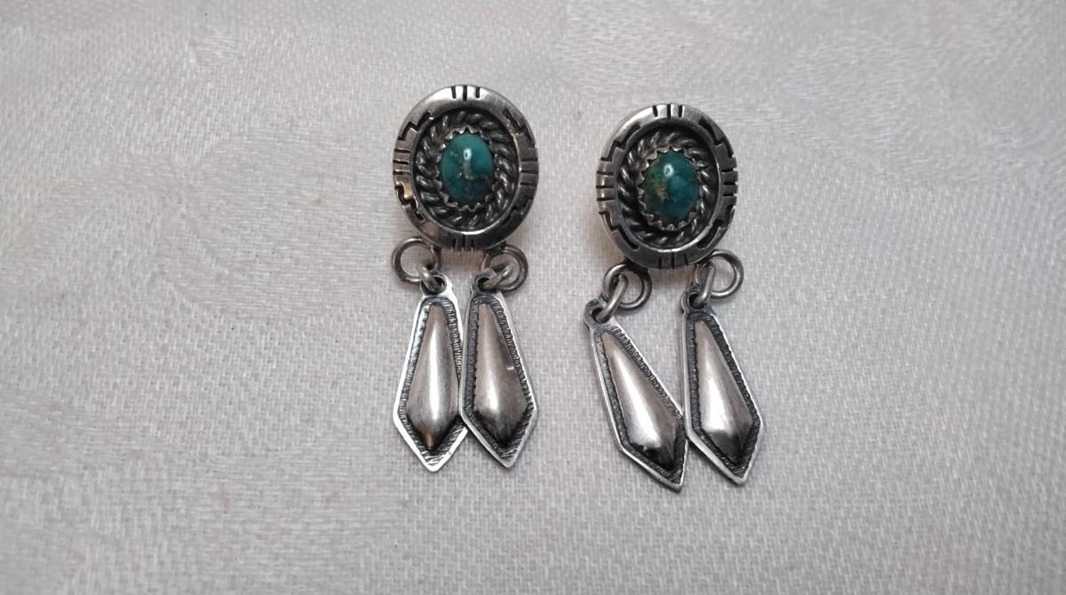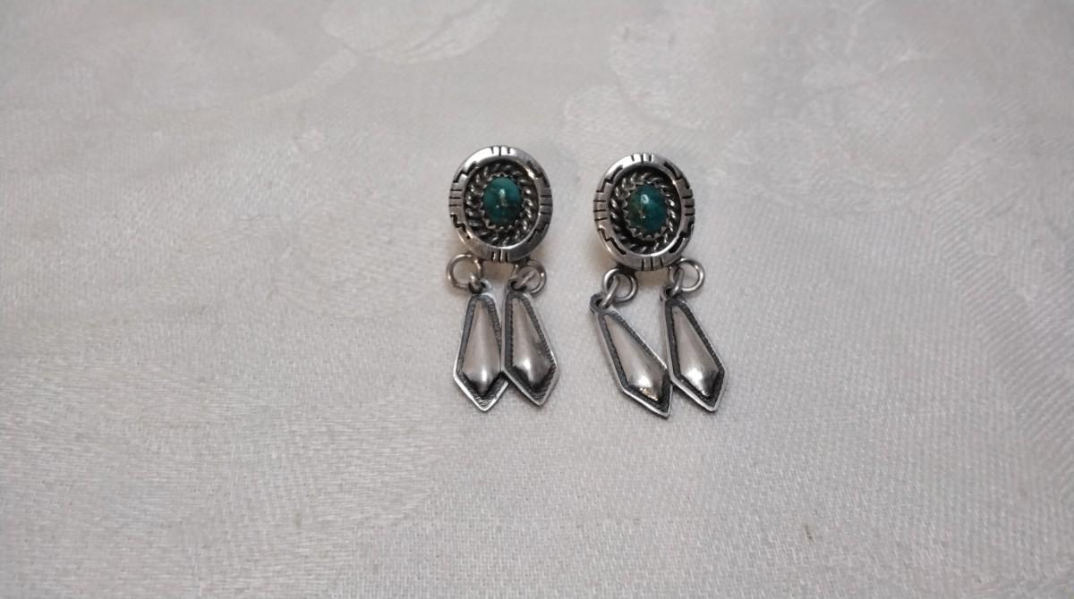 Navajo Hallmarked Hand Stamped Turquoise 925 Earrings