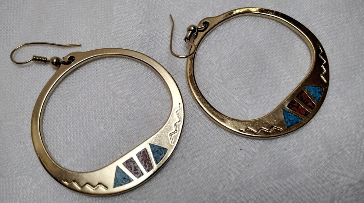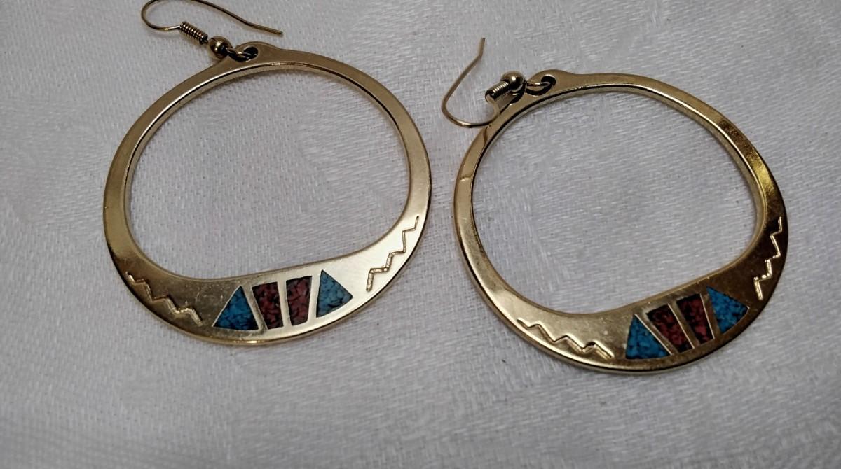 Gold Vermeil Turquoise and Coral King Tut Earrings