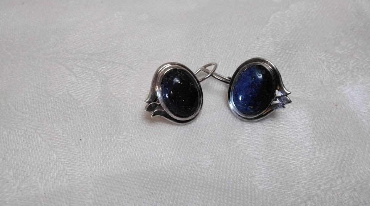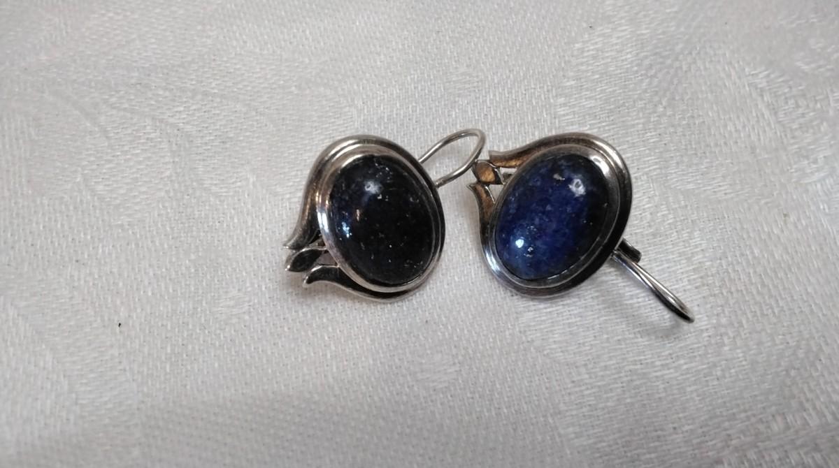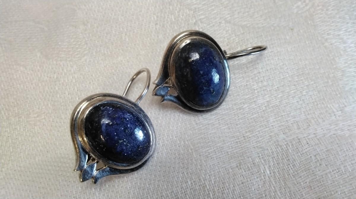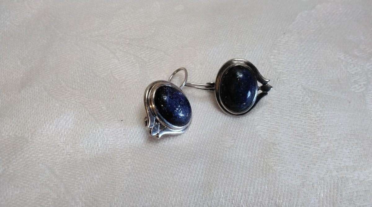 Vintage One of a Kind Lapis Lazuli With Areas of Pyrite (Fools Gold) 925 Earrings